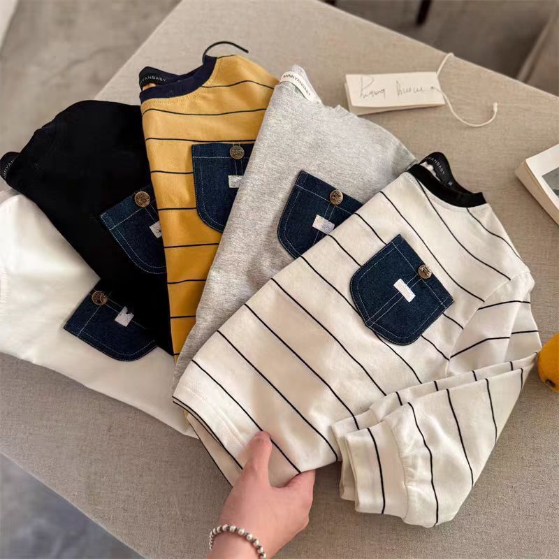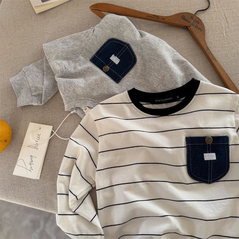 어린이 긴팔 티셔츠 봄과 가을 소년과 소녀 한국 스타일 새로운 탑 어린이 포켓 의류 아기 유행 브랜드 베이스 셔츠스토어 가기