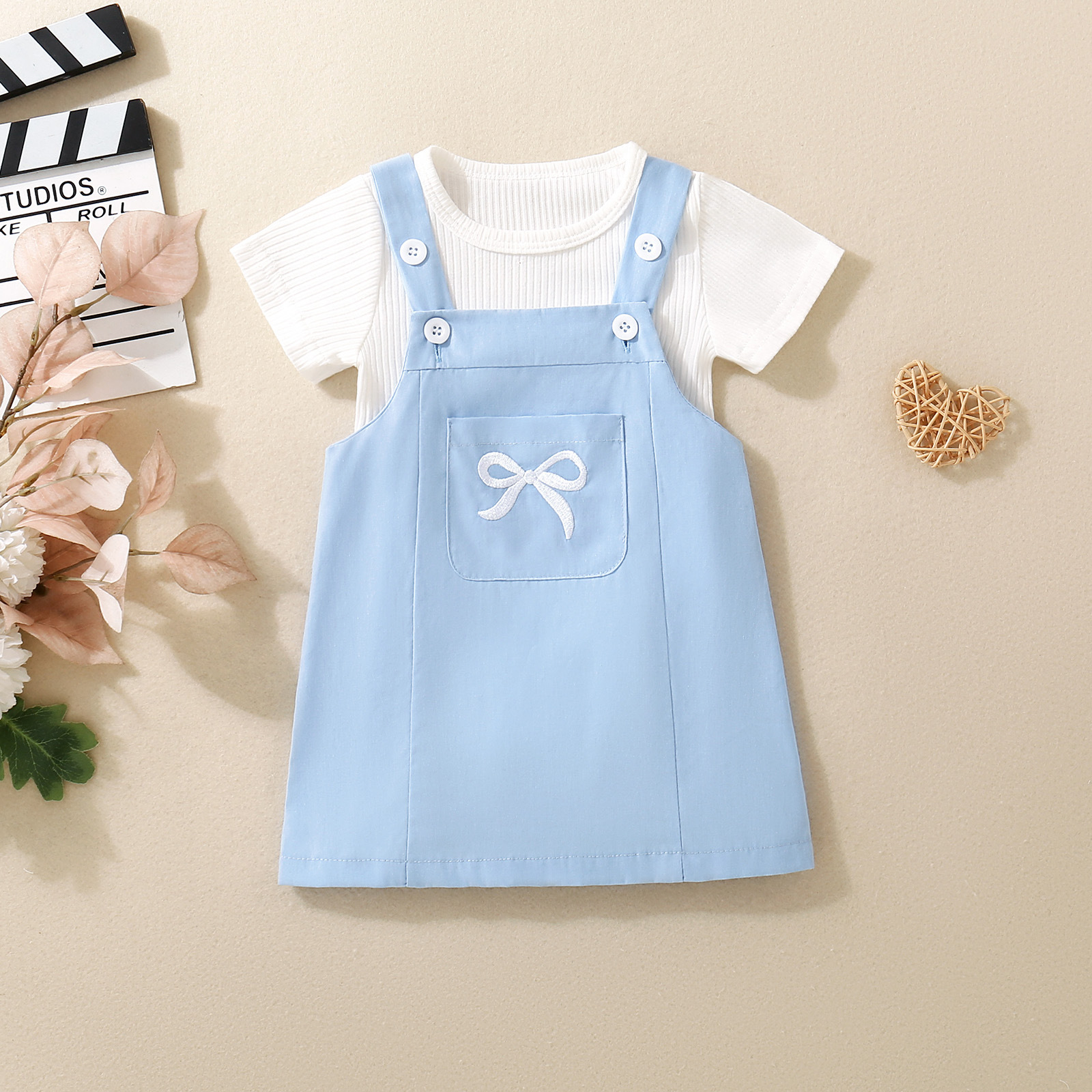 국경 간 아기 보라색 파란색 핑크 아기 소녀 슬링 원피스 나비 자수 베이스 코트 세트 YT2587스토어 가기