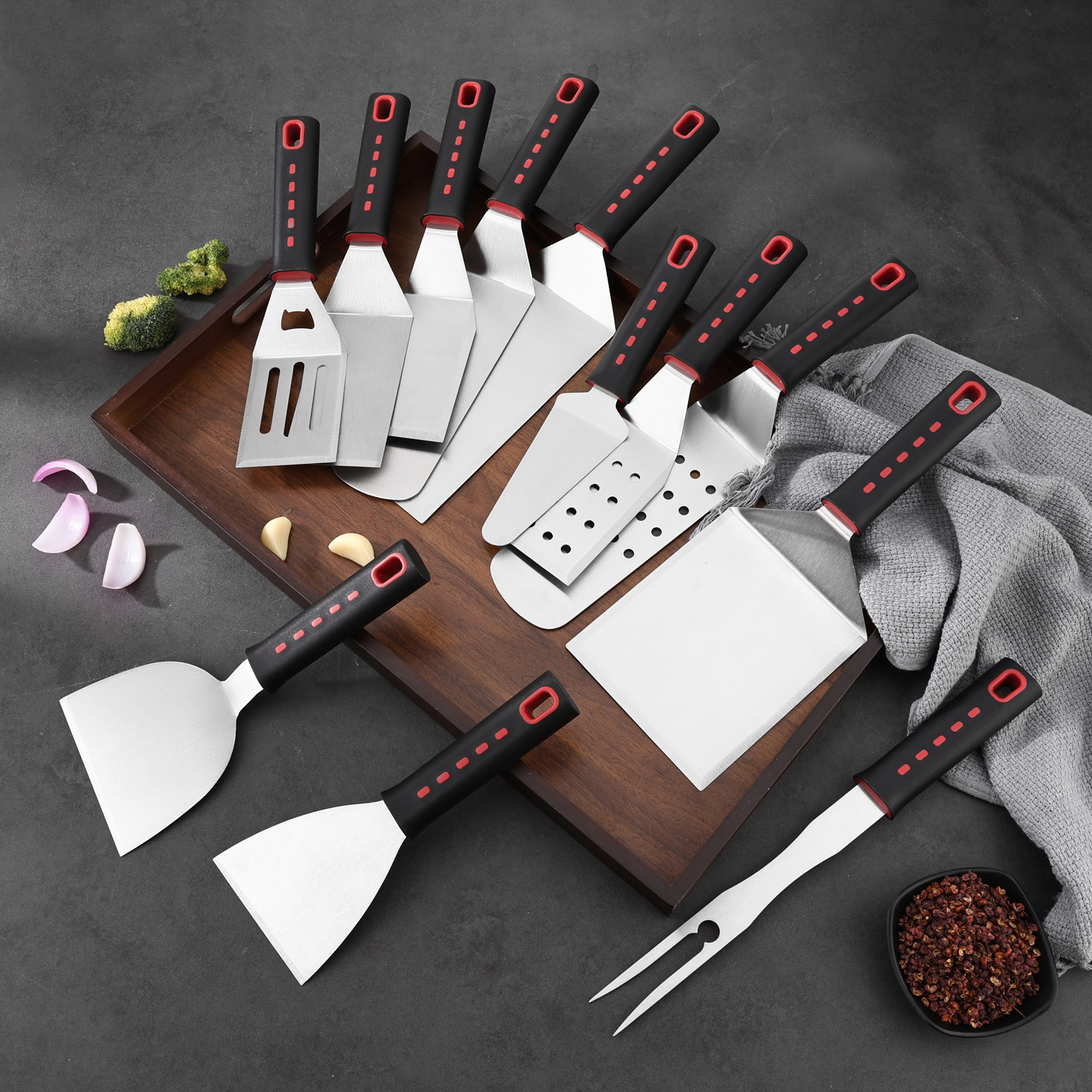 구이 삽 스테인레스 스틸 요리 삽 바베큐 삽 도구 굽기 삽 테파야 키 BBQ 그릴 스테이크 삽 조합 세트