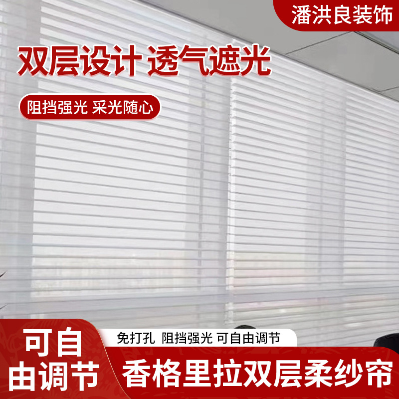 샹그릴라 거즈 커튼 창문 커튼 거실 사무실 롤스크린 무타공 블라인드 이중 레이어 차광 부드러운 거즈 커튼