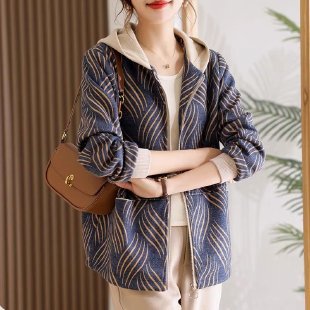 새로운 엄마 봄 패션 나이를 줄이는 재킷 코트 서양식 중년 여성 봄과 가을 느슨한 캐주얼 후드 탑스토어 가기