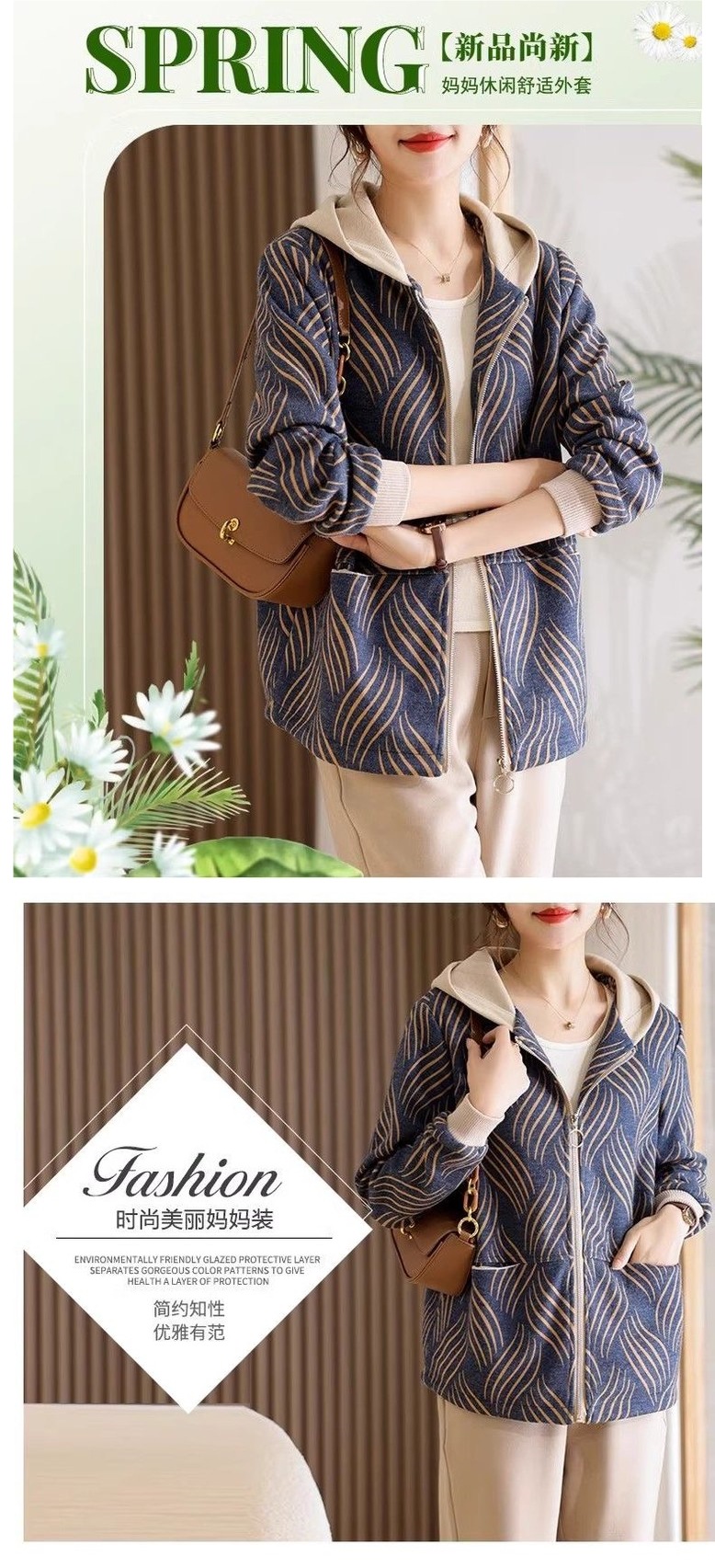 새로운 엄마 봄 패션 나이를 줄이는 재킷 코트 서양식 중년 여성 봄과 가을 느슨한 캐주얼 후드 탑
