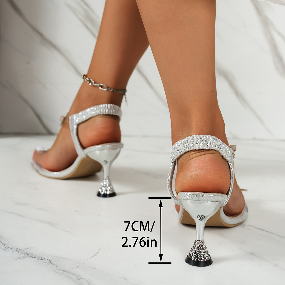 2025 여름 새로운 대형 36-43 유럽과 미국의 패션 라인 석 하이힐 샌들 여성 신발 요정 샌들스토어 가기