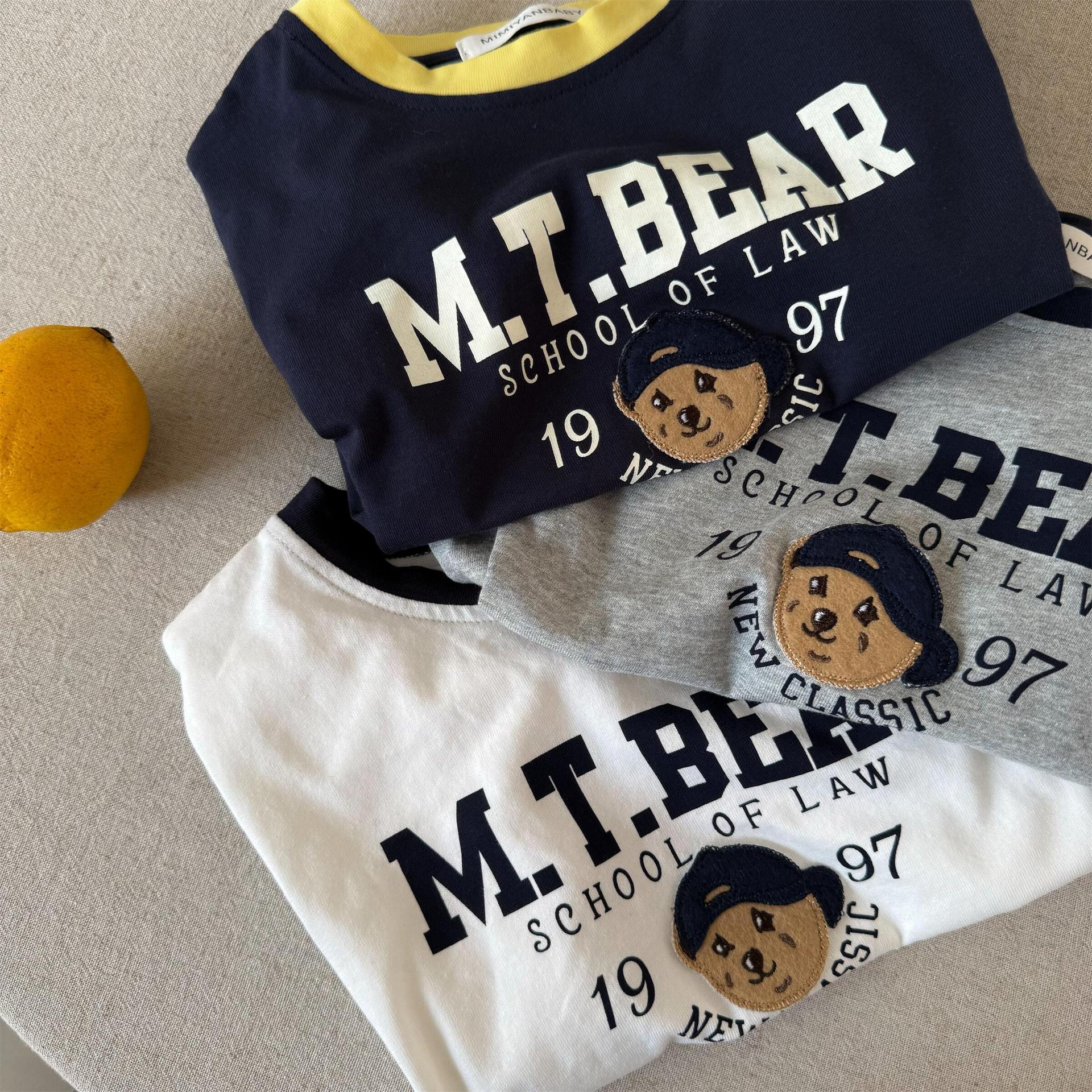Tongxingyuan 올 매치 어린이 반팔 여름 소년과 소녀 일본 유행 브랜드 만화 편지 T 아기 어린이 서양식 티셔츠