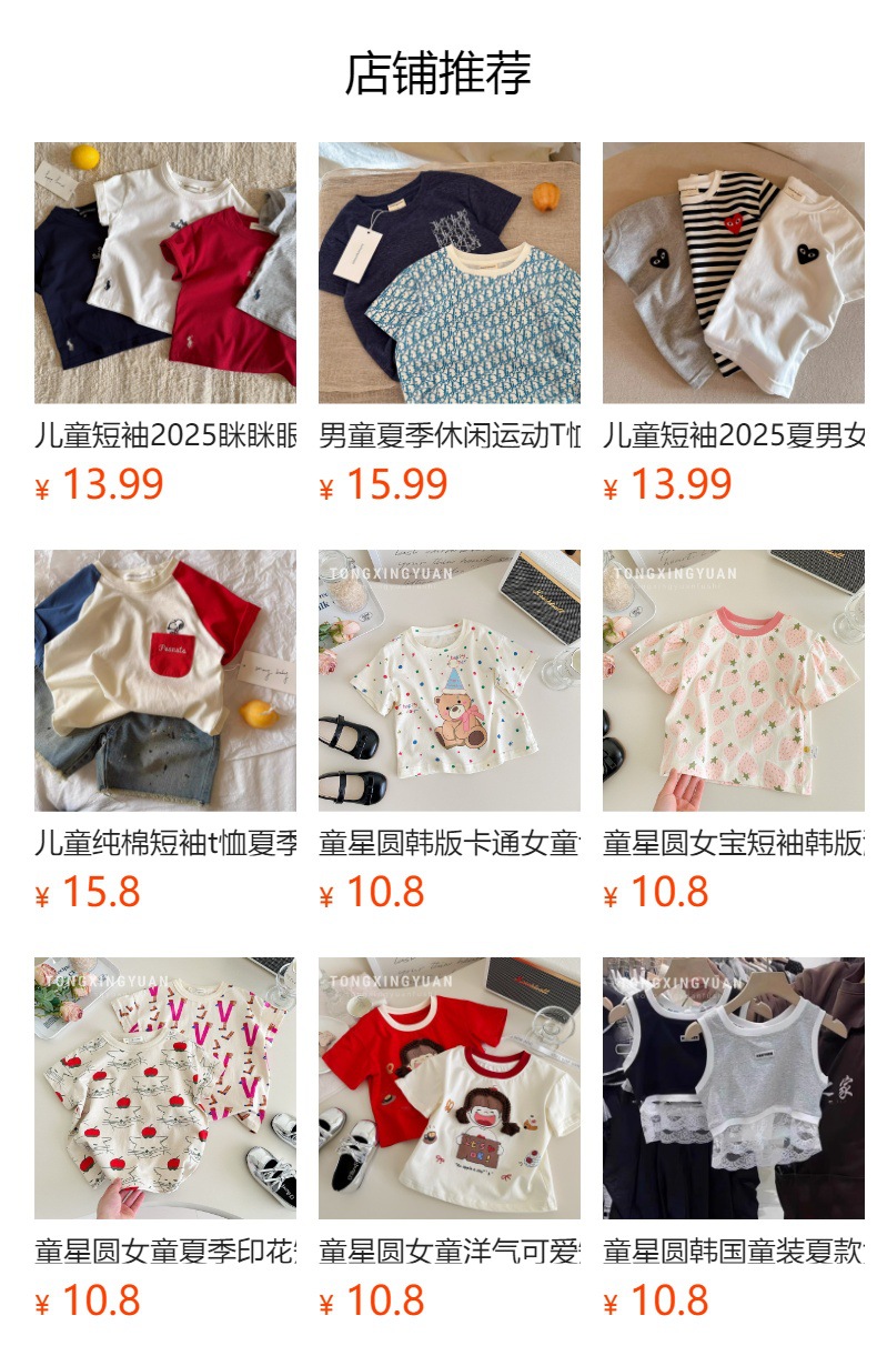 Tongxingyuan 올 매치 어린이 반팔 여름 소년과 소녀 일본 유행 브랜드 만화 편지 T 아기 어린이 서양식 티셔츠스토어 가기