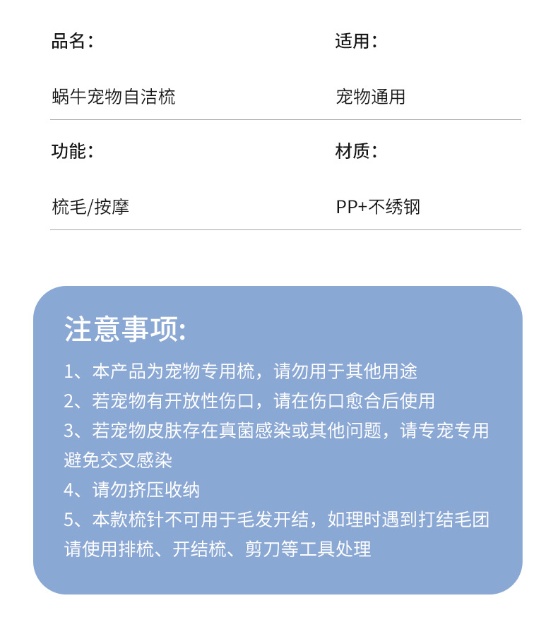 크로스 국경 고양이 빗 달팽이 스테인리스 바늘 빗 머리 제거 브러시 고양이와 개 콤버 애완 동물 머리 제거 청소 용품스토어 가기