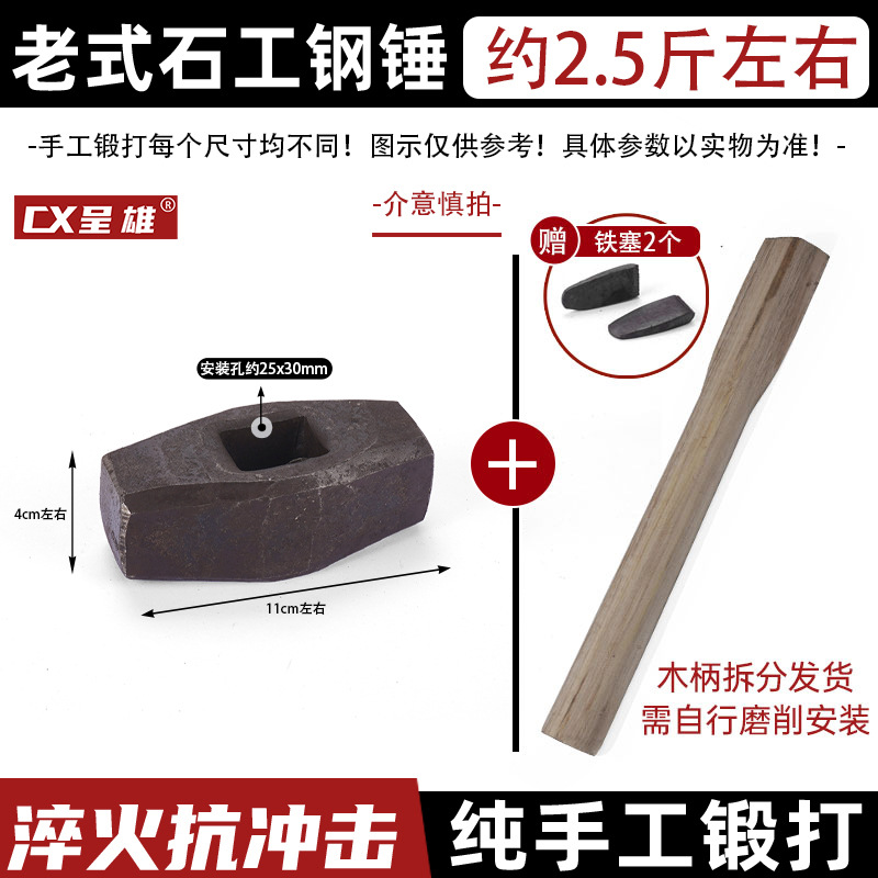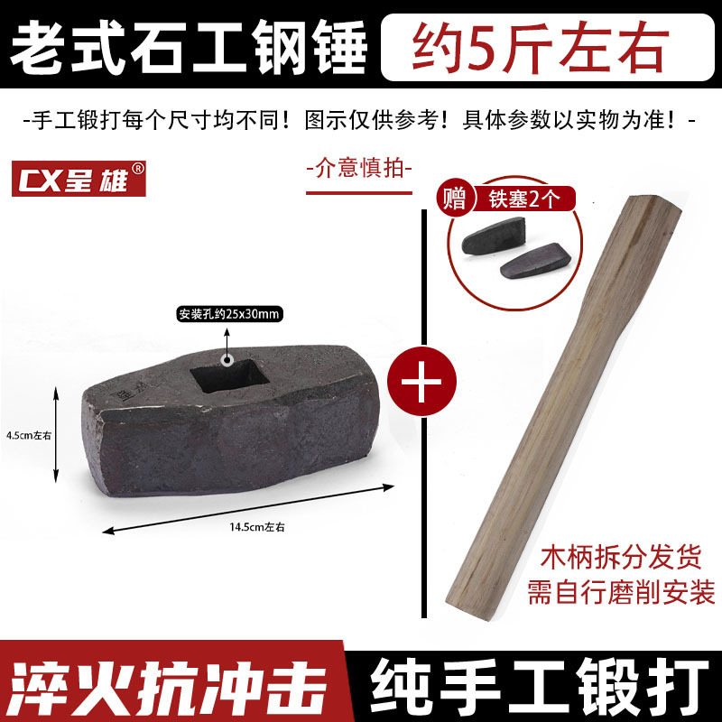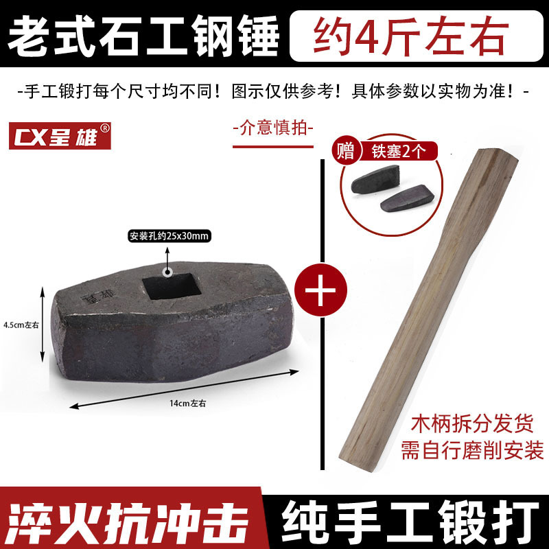 구식 돌 망치 나무 손잡이 망치 사각형 머리 나무 손잡이의 소스 벽 철거 Hui'an 망치 망치 팔각형 망치를 부수기 위해스토어 가기