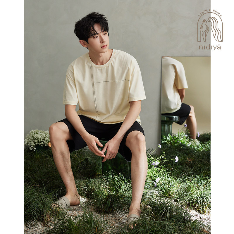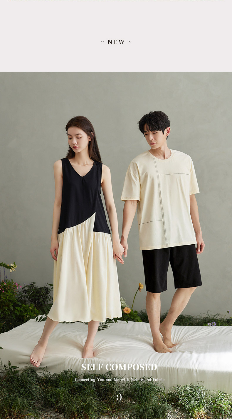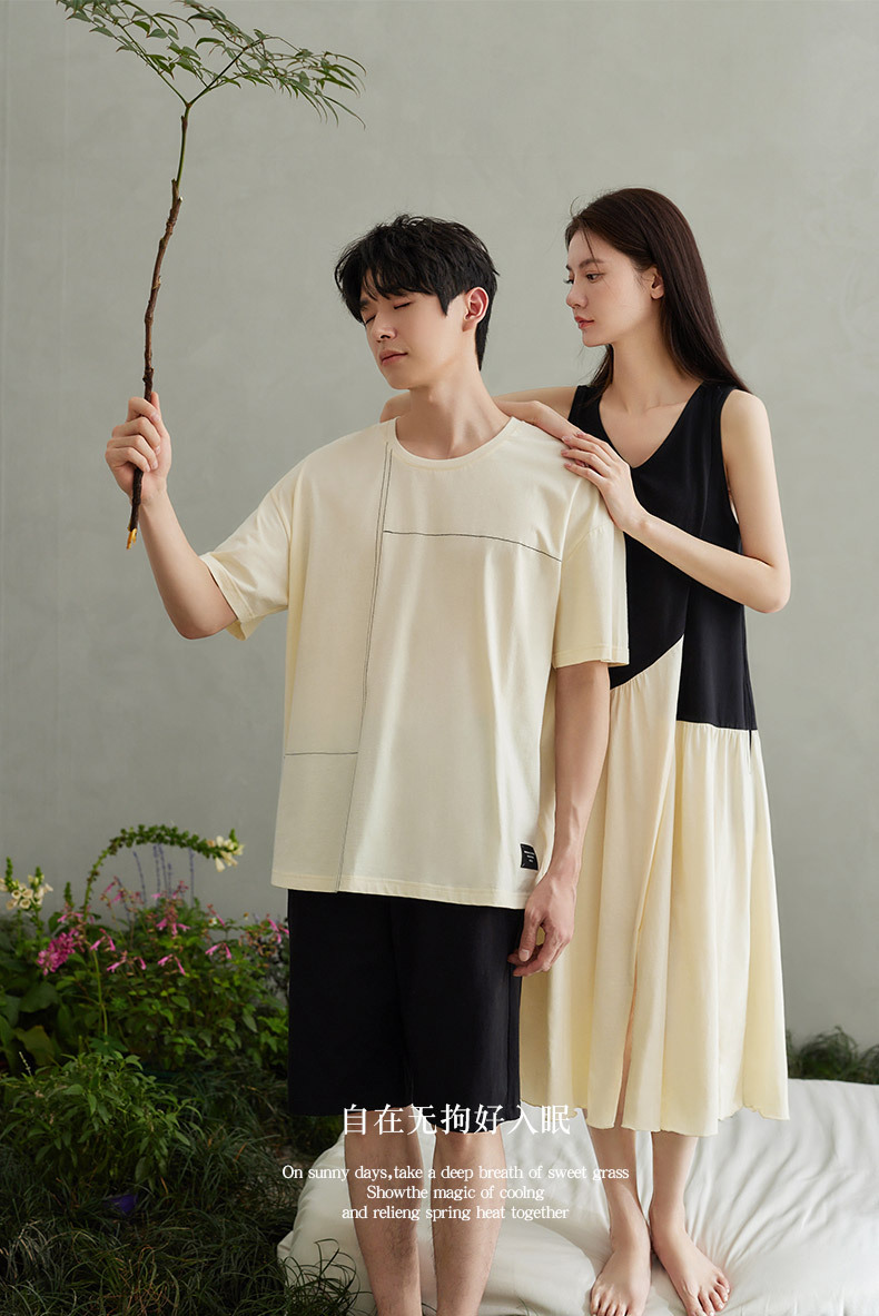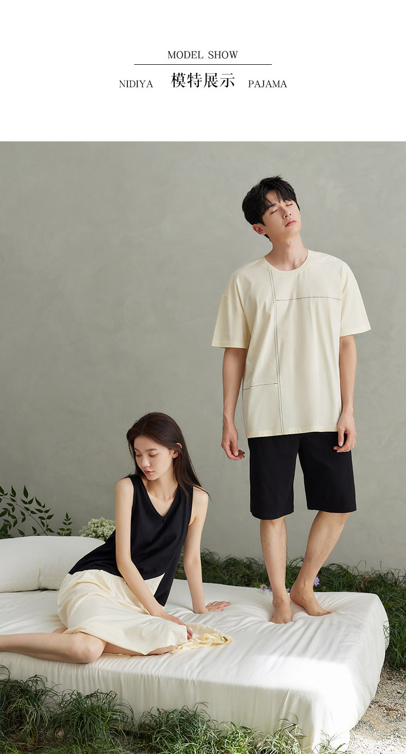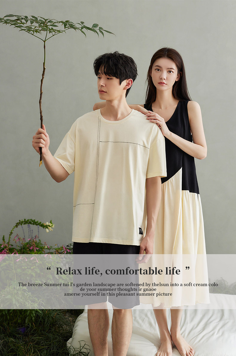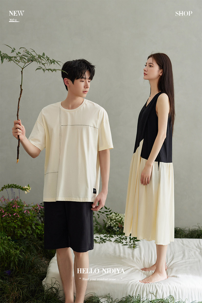 나디아 커플 잠옷 여름 순수한면 입고 편안한 여성 나이트 드레스 간단한 남성 느슨한 홈 의류 세트스토어 가기