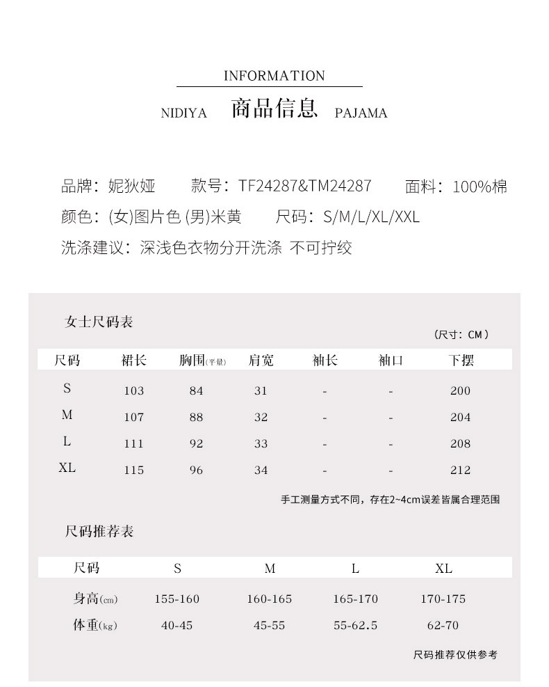 나디아 커플 잠옷 여름 순수한면 입고 편안한 여성 나이트 드레스 간단한 남성 느슨한 홈 의류 세트