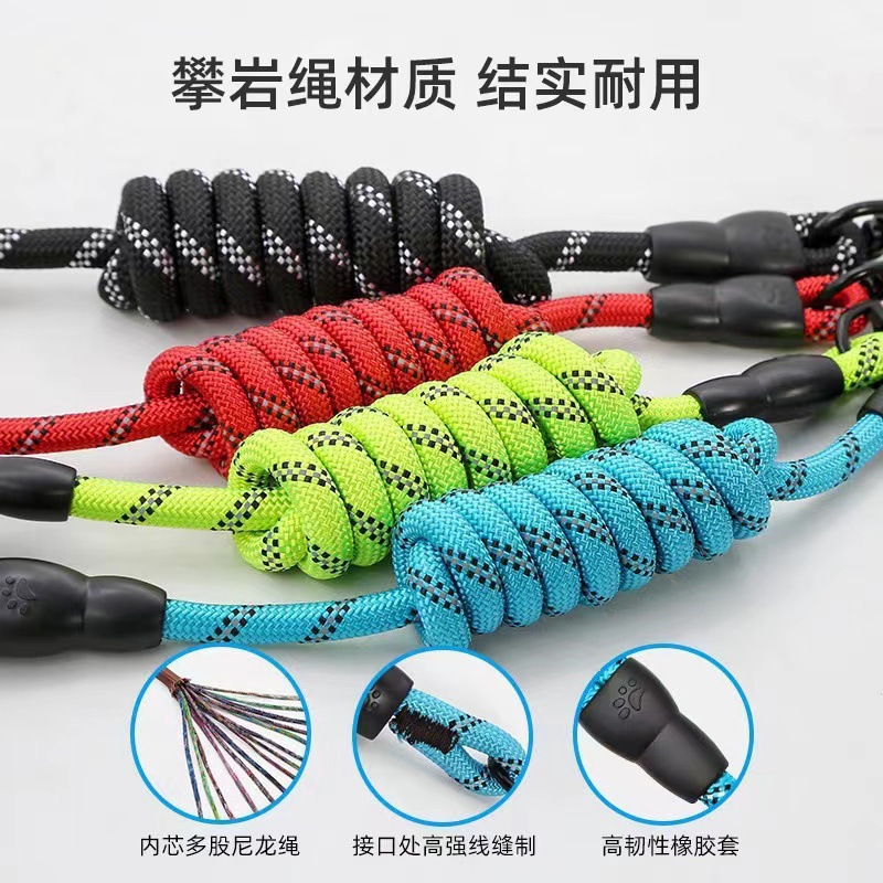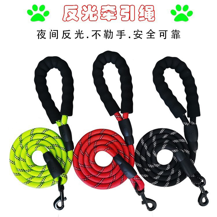 도매 국경 폭발 개 걷는 개 견인 로프 나일론 반사 라운드 로프 애완 동물 견인 로프 공급 거품 핸들스토어 가기