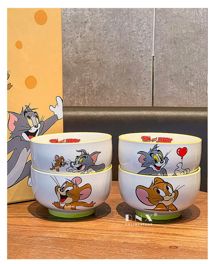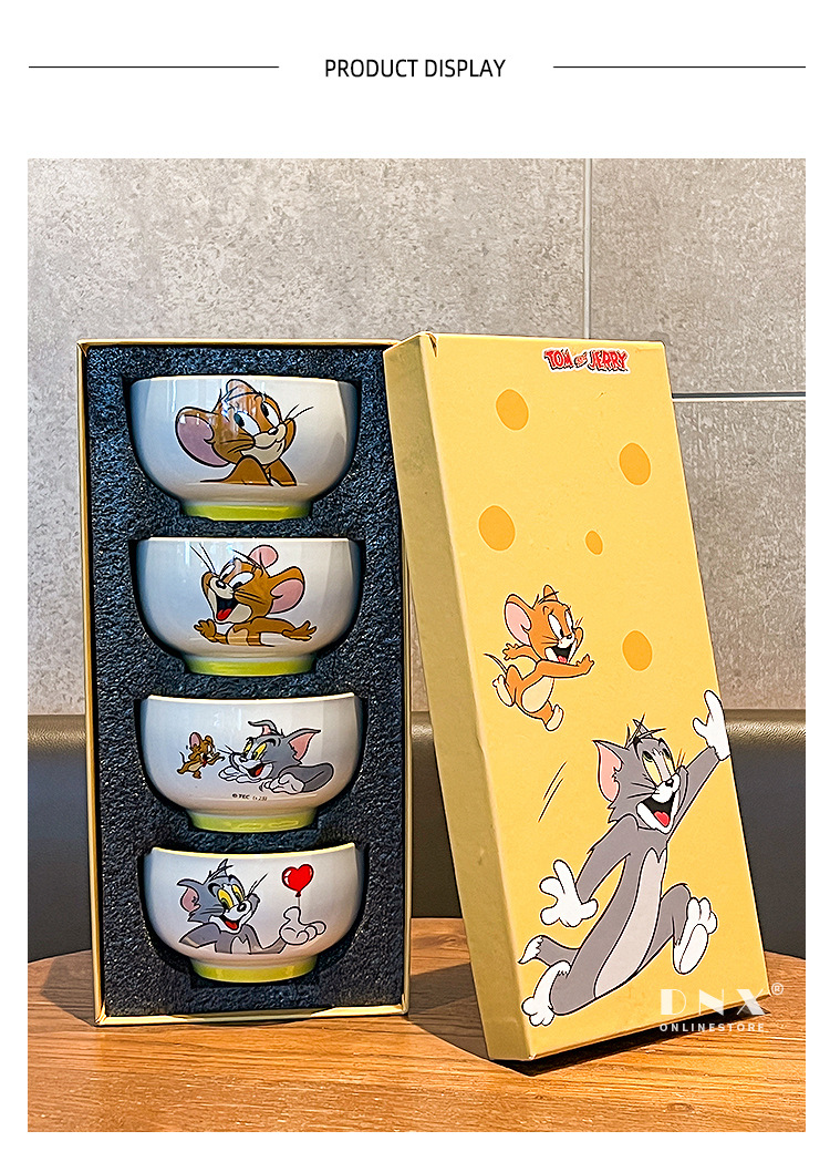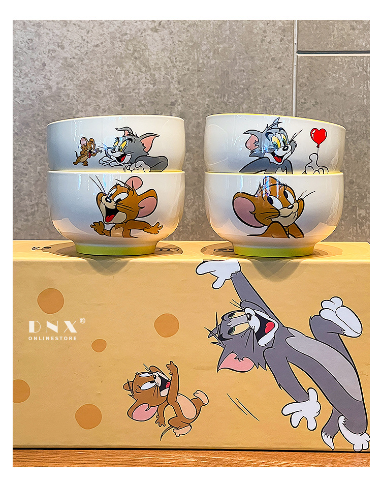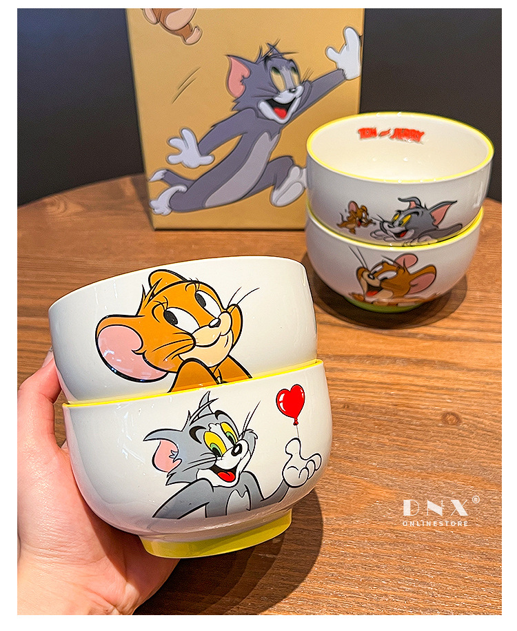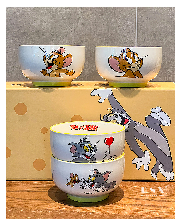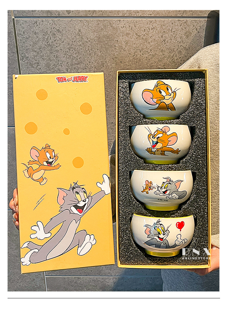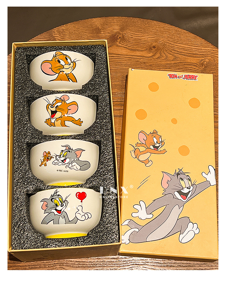 고양이와 마우스 세라믹 그릇 선물 상자 높은 색상 가치 쌀 그릇 높은 온도 저항하는 가정용 세트 쌀 그릇 선물 상자 손 선물스토어 가기