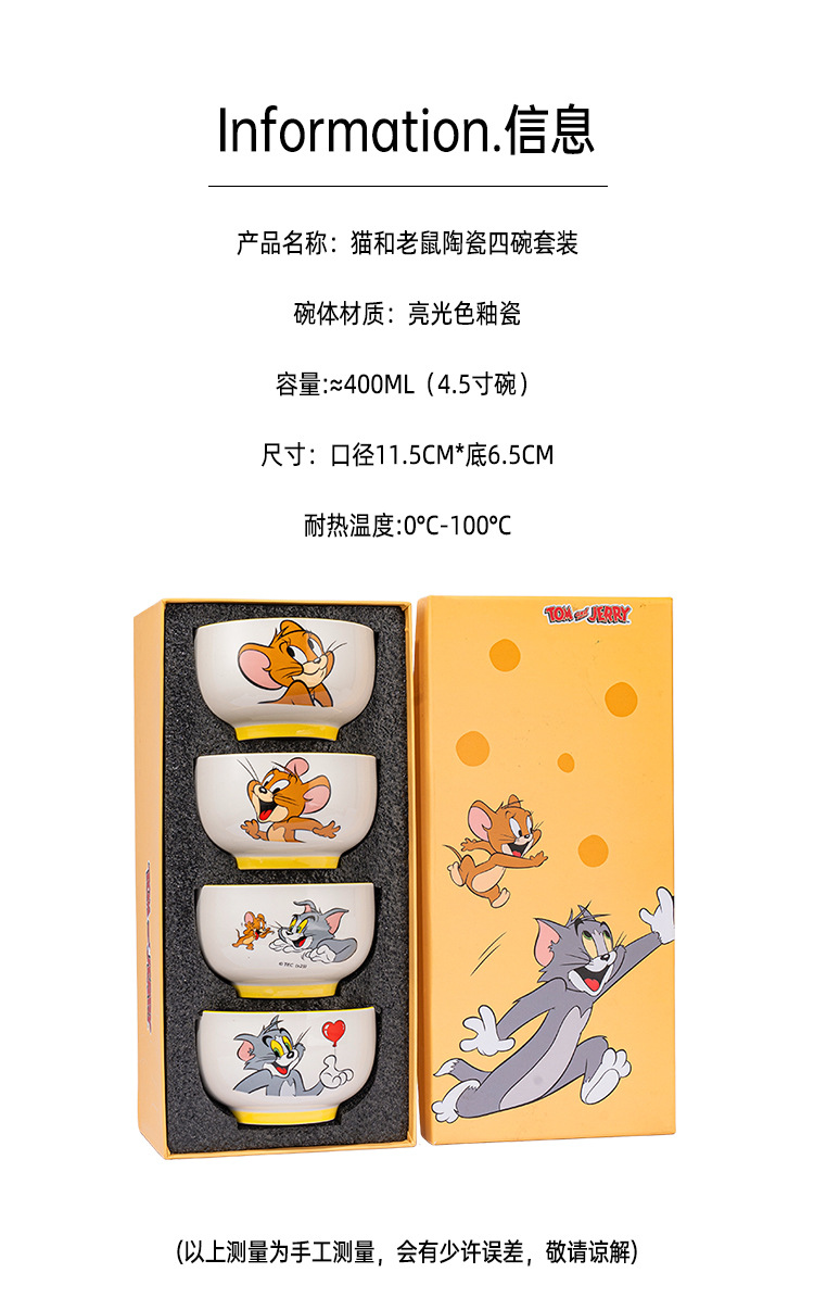 고양이와 마우스 세라믹 그릇 선물 상자 높은 색상 가치 쌀 그릇 높은 온도 저항하는 가정용 세트 쌀 그릇 선물 상자 손 선물