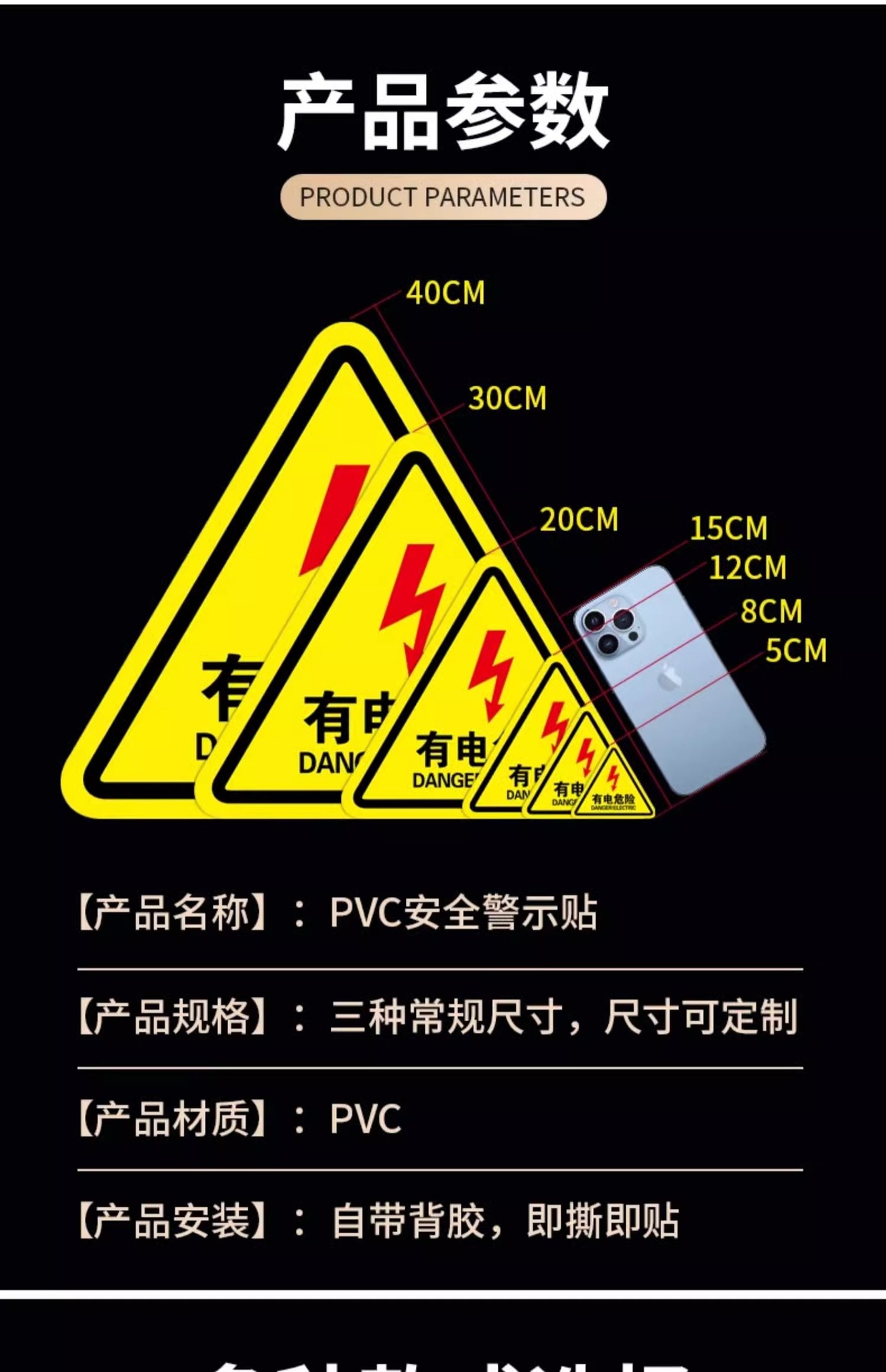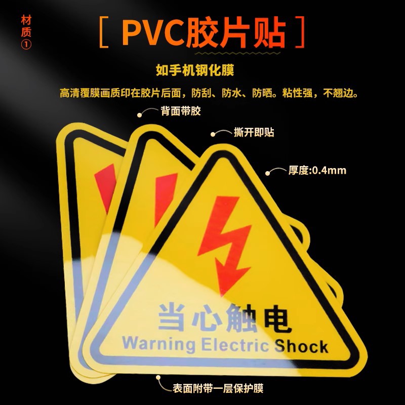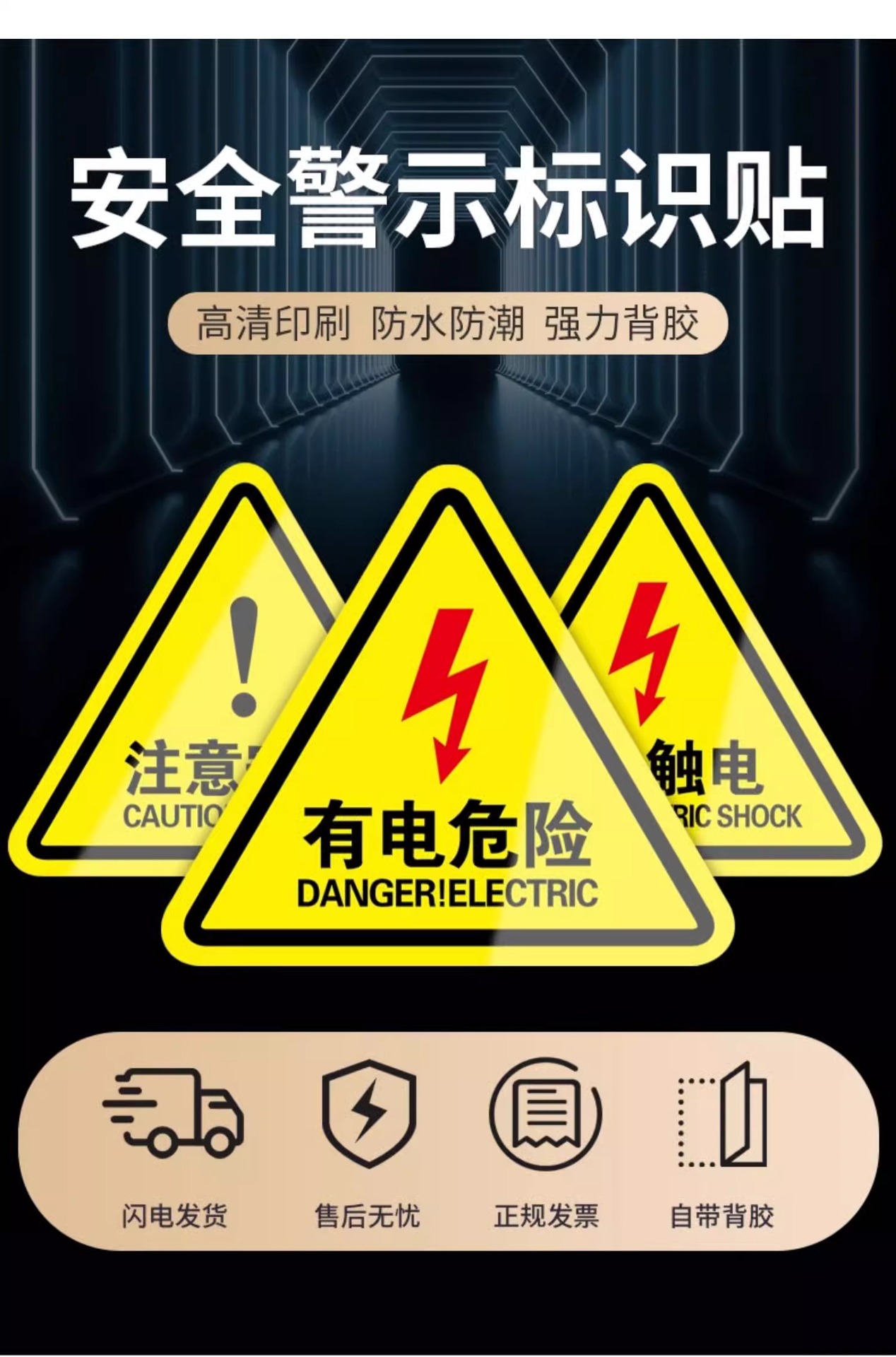 当心触电pvc墙贴安全标识牌标识贴 定制工厂有电危险安全警示牌