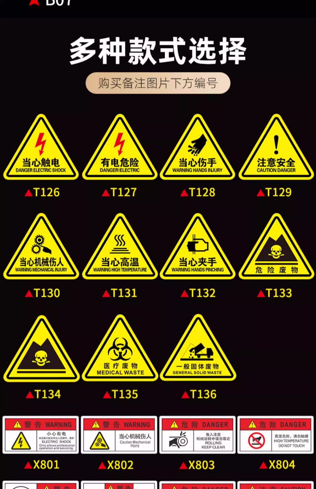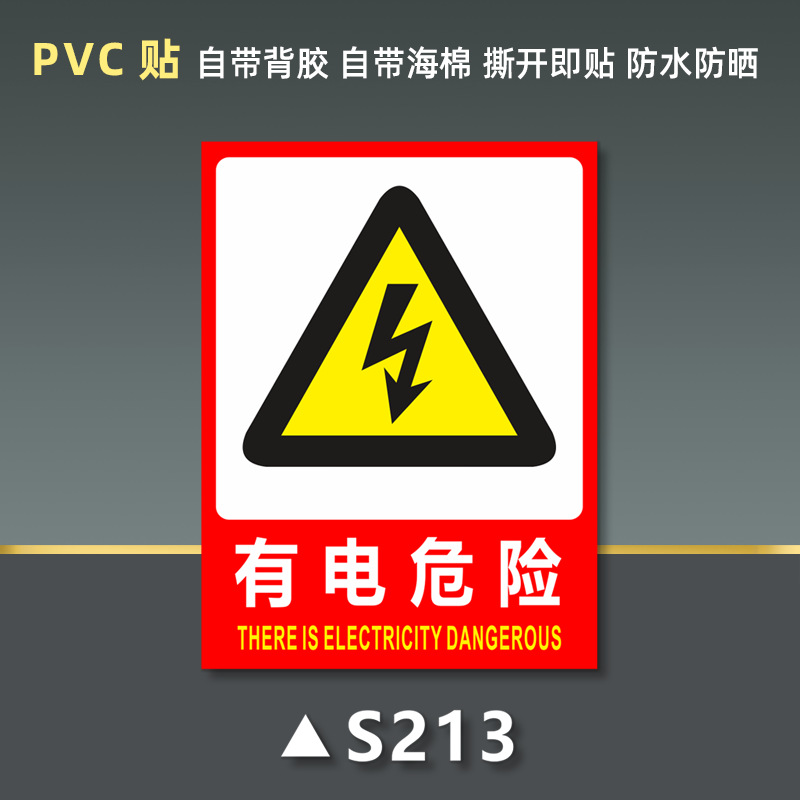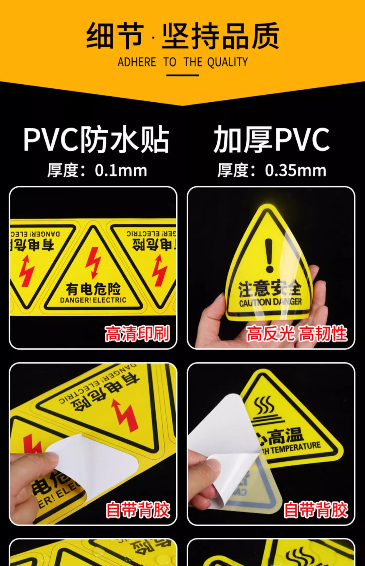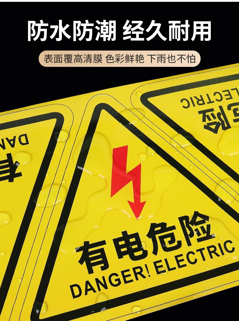 当心触电pvc墙贴安全标识牌标识贴 定制工厂有电危险安全警示牌
