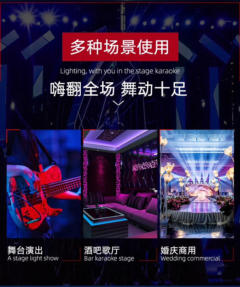 바 풀 컬러 스트로브 라이트 스테이지 3 대 1 염색 라이트 볼룸 8 세그먼트 LED 플래시 플래시 플래시 라이트 라이트