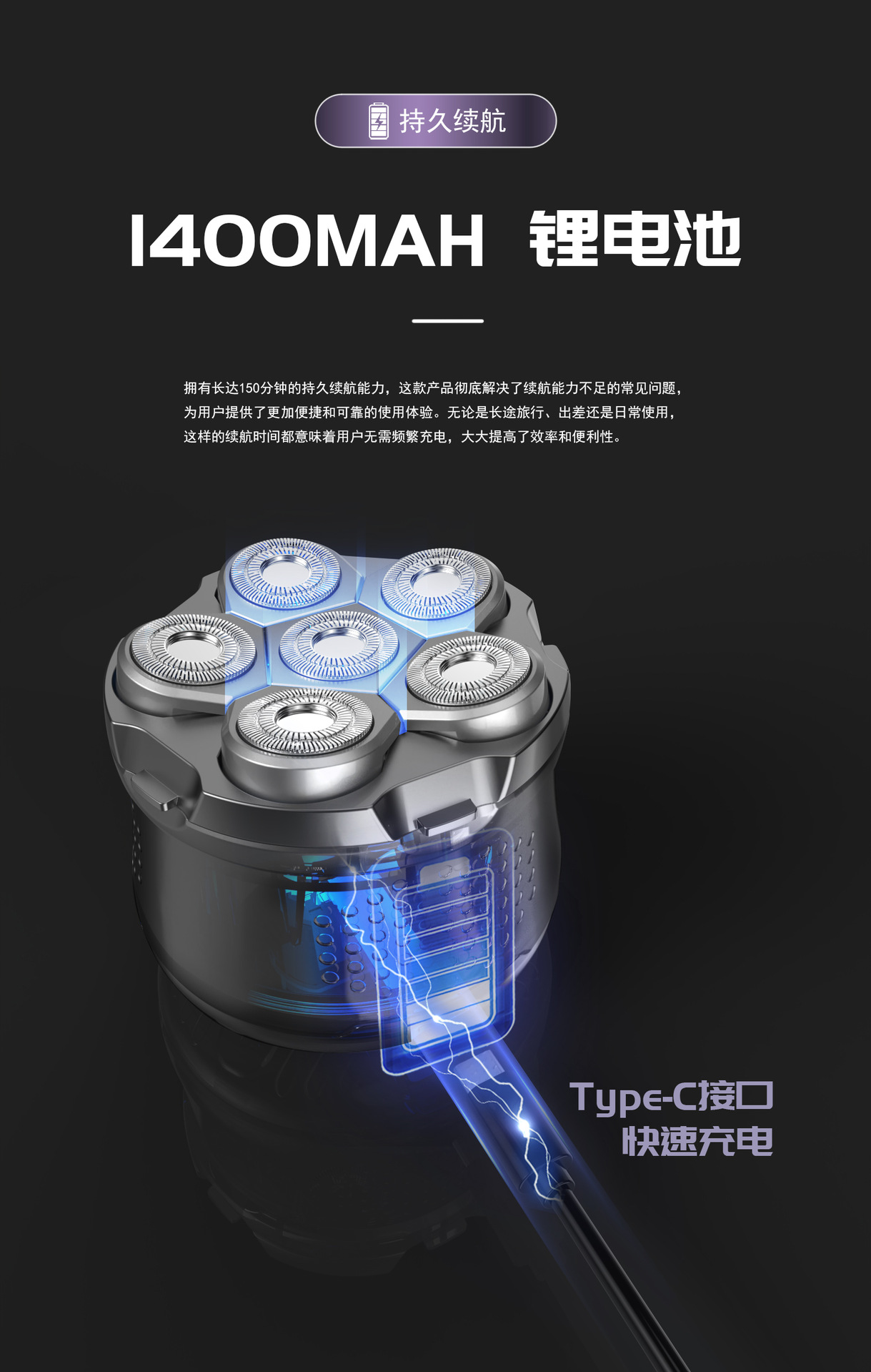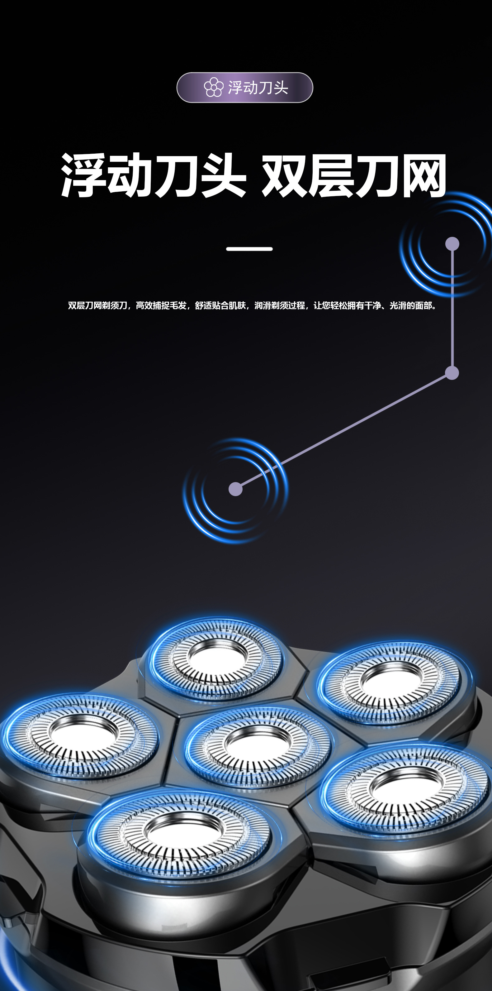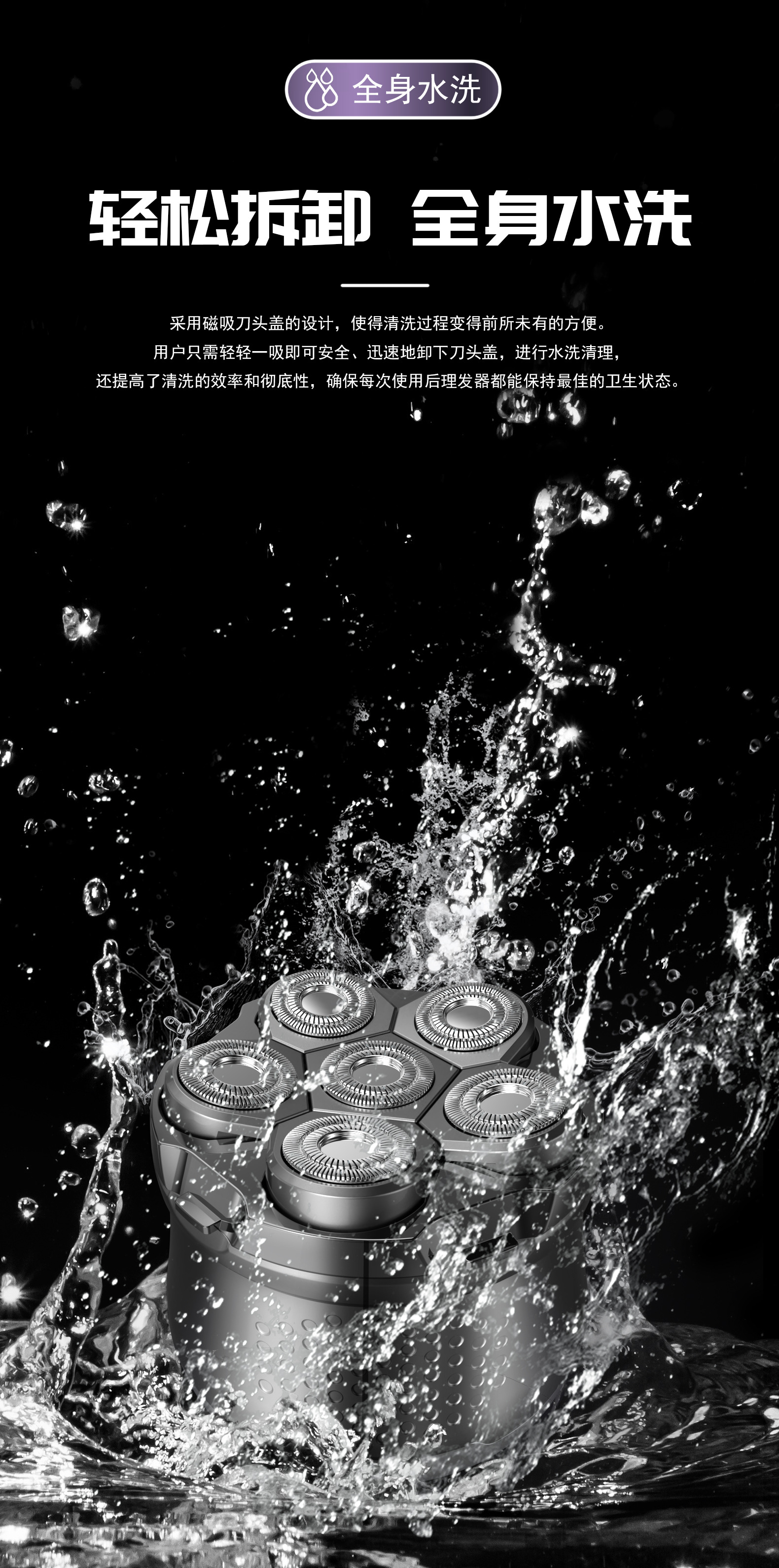남성용 6날 전기 면도기 10W 고출력 셀프 면도기 및 이발기