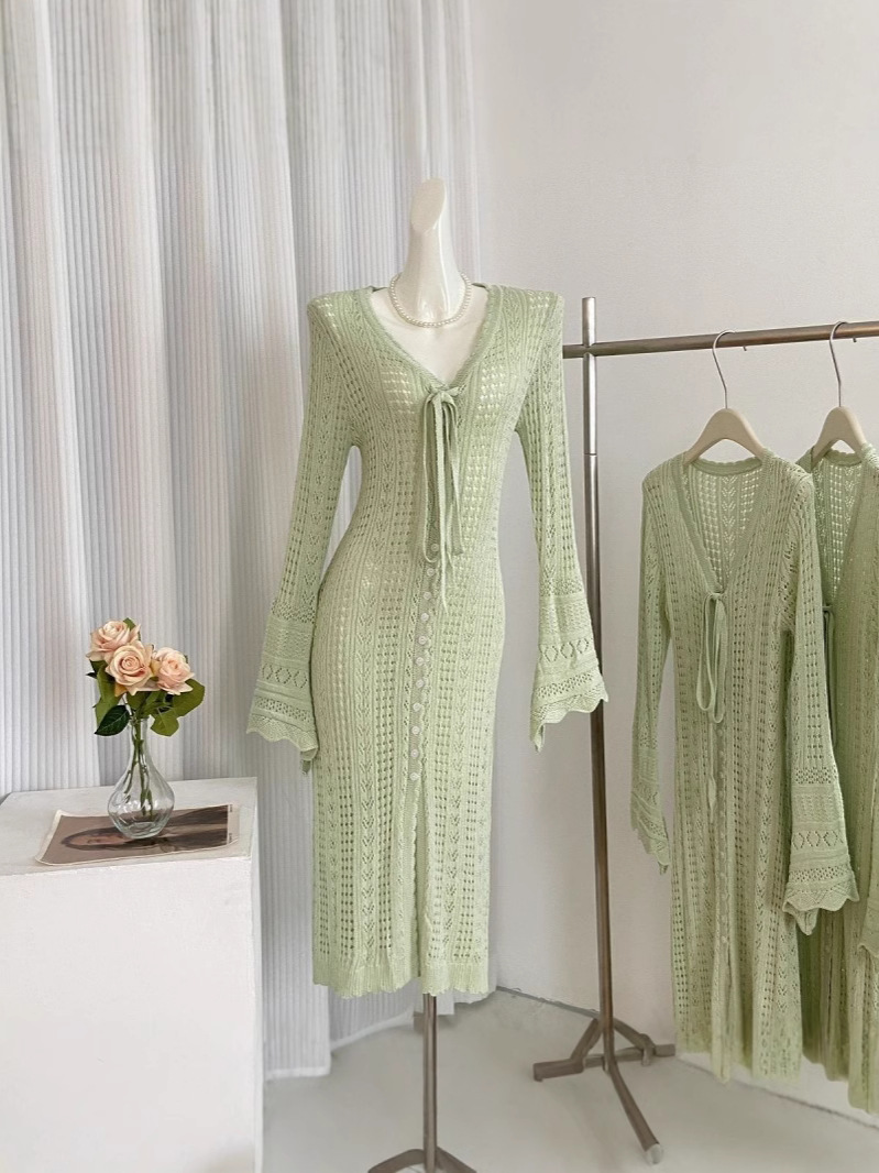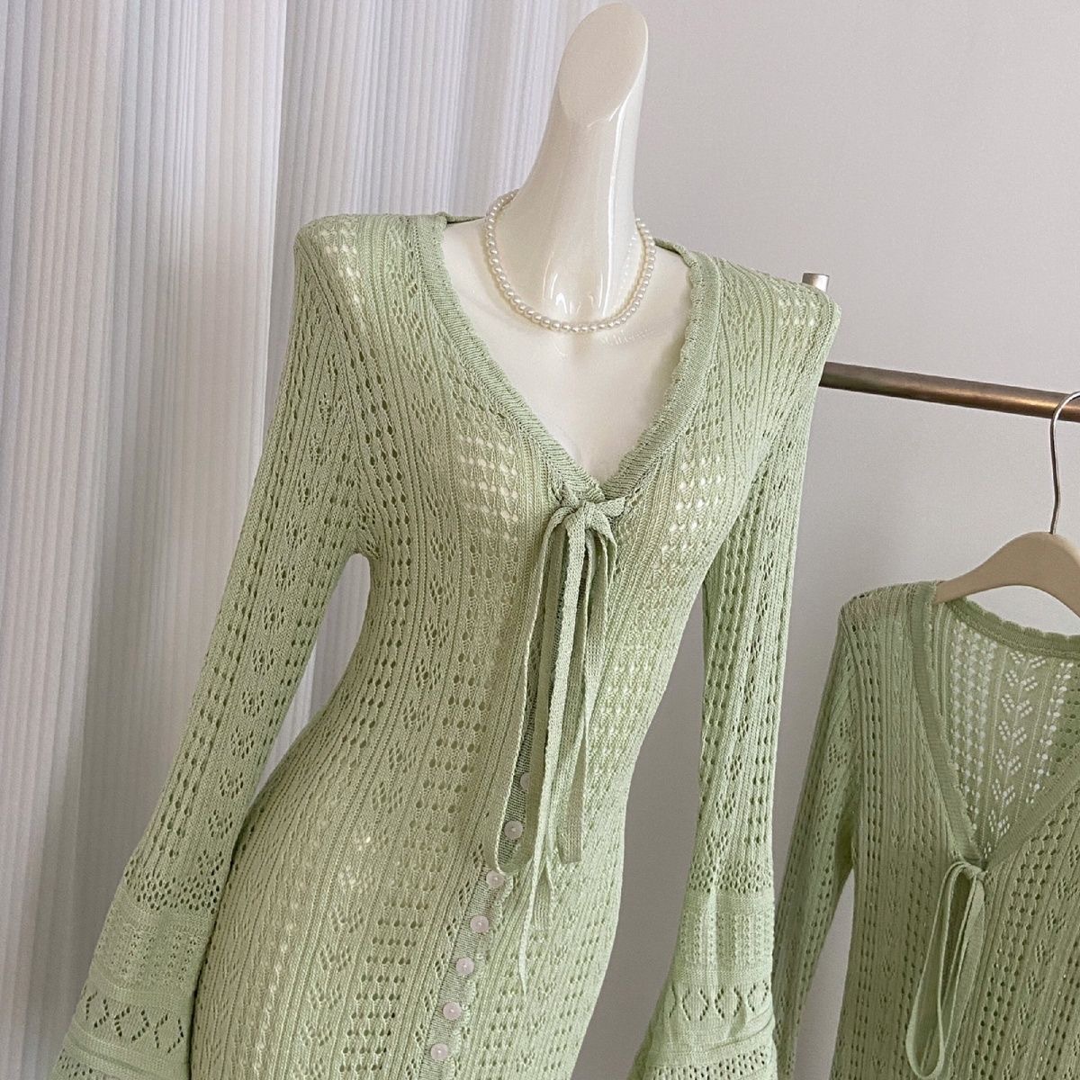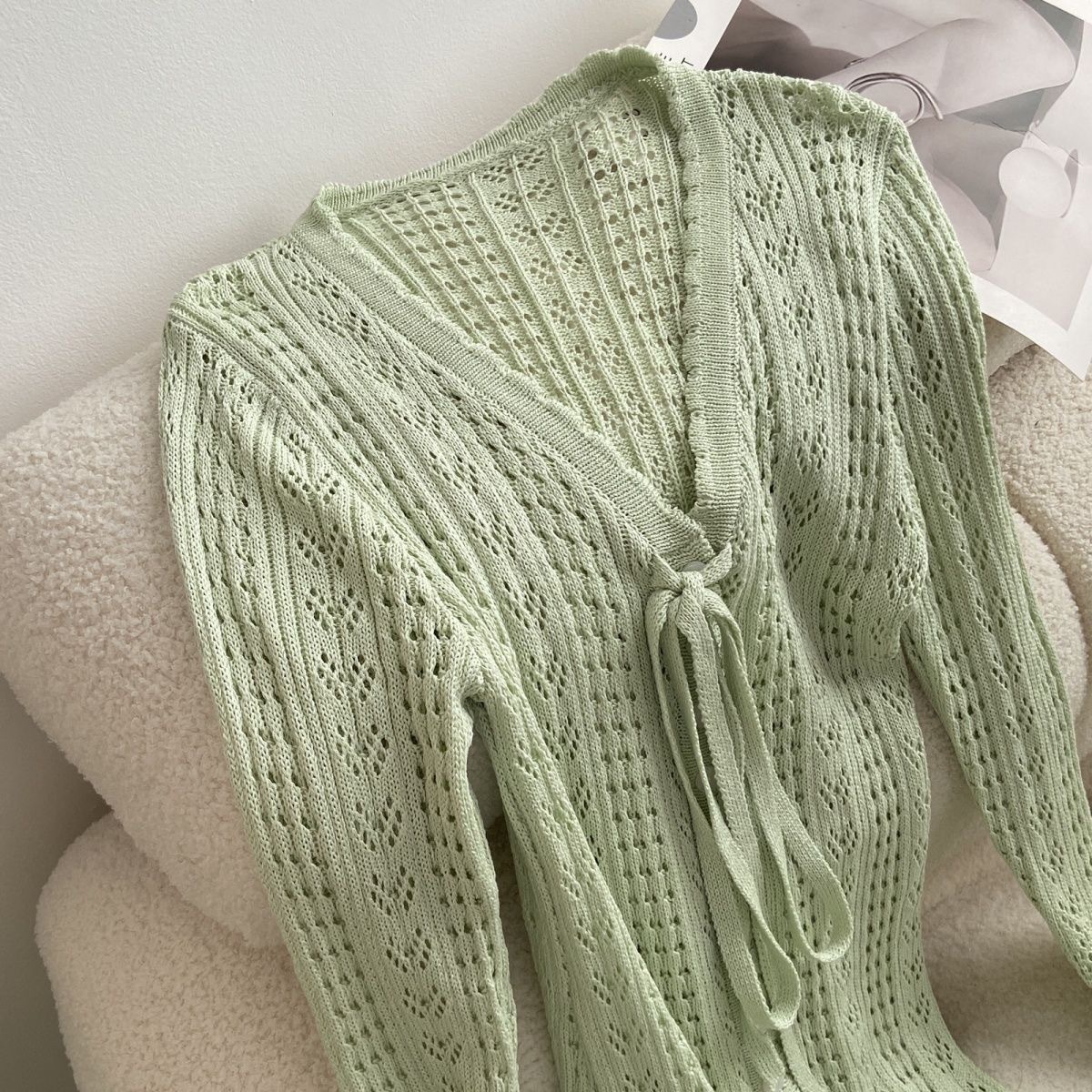사랑해 TV 연예인 같은 스타일 그린 브이넥 스웨터 탑 중간 길이 자외선 차단 재킷 에어컨 셔츠 브이넥