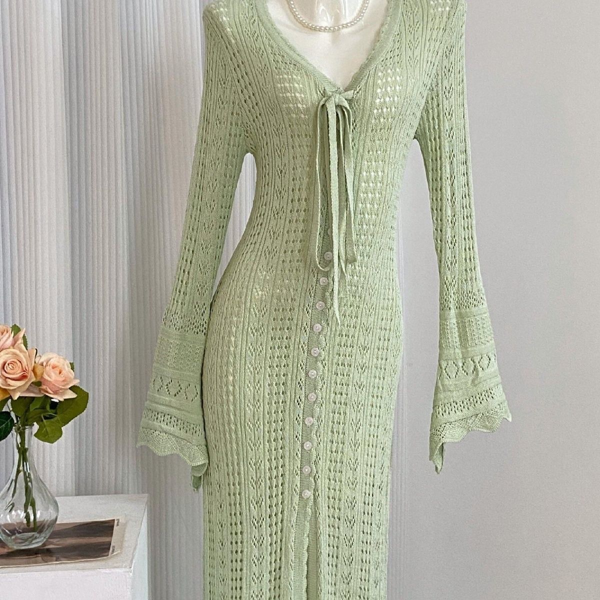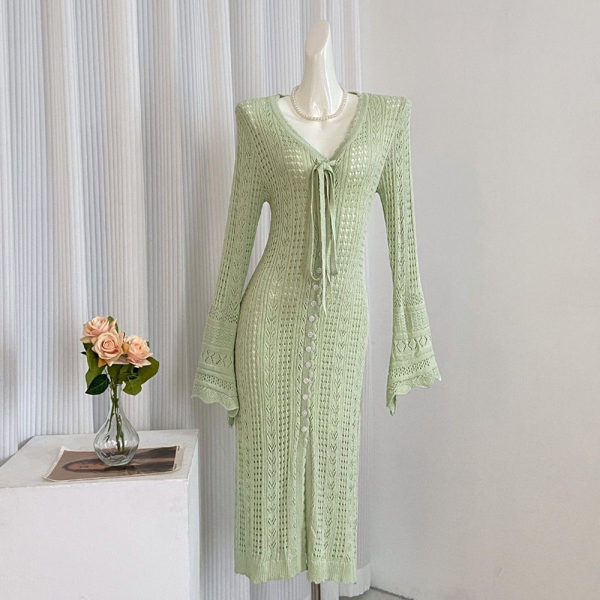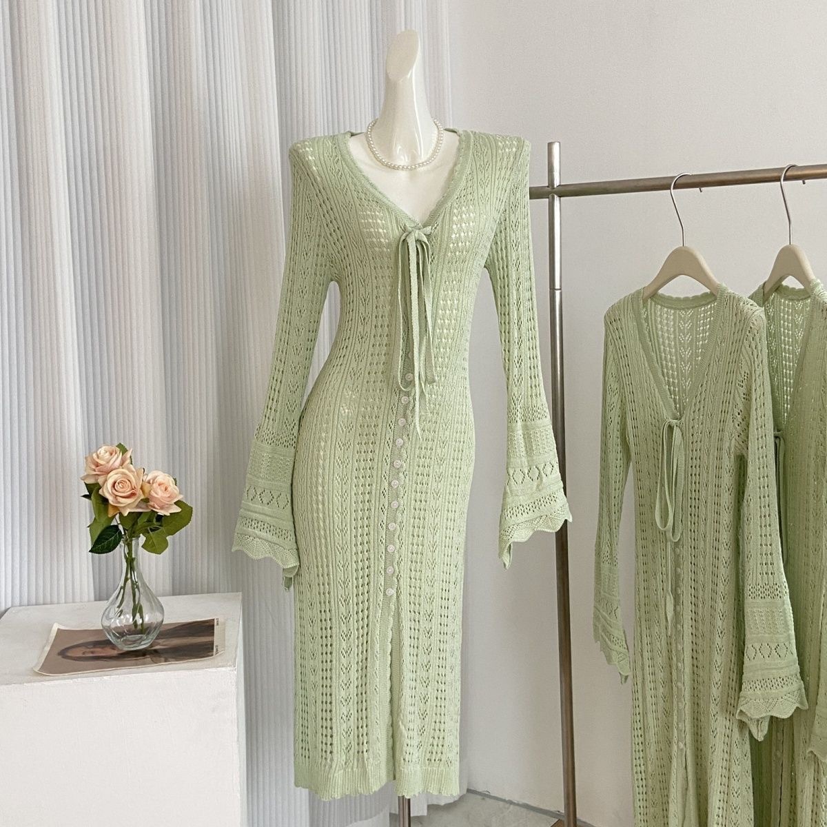 사랑해 TV 연예인 같은 스타일 그린 브이넥 스웨터 탑 중간 길이 자외선 차단 재킷 에어컨 셔츠 브이넥