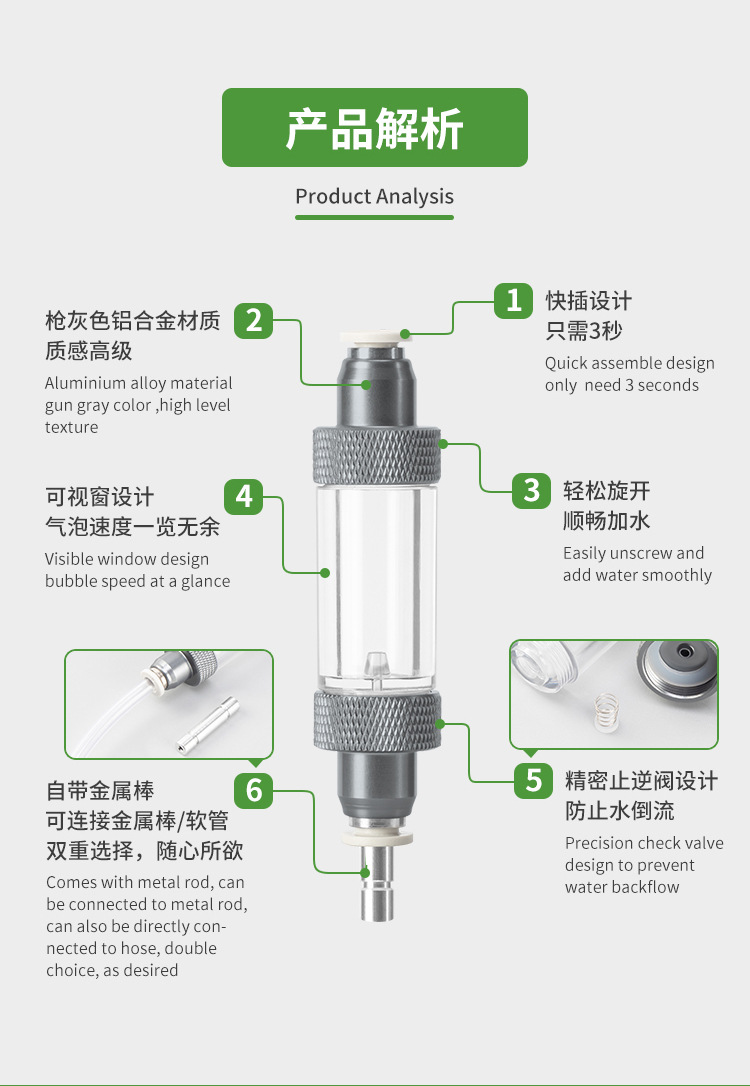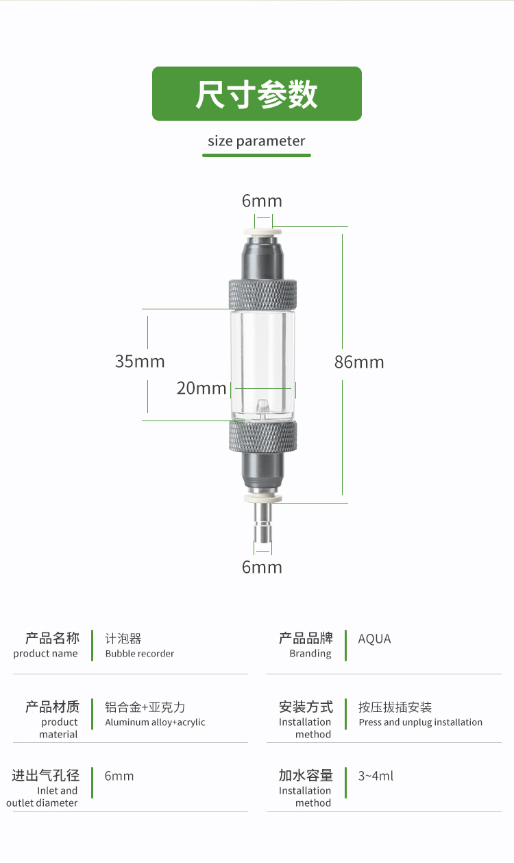 수족관, 이산화탄소 이중 헤드 버블 미터 아크릴 짚 실린더 인라인 CO2 건 애쉬 스톱 버블 미터 공급