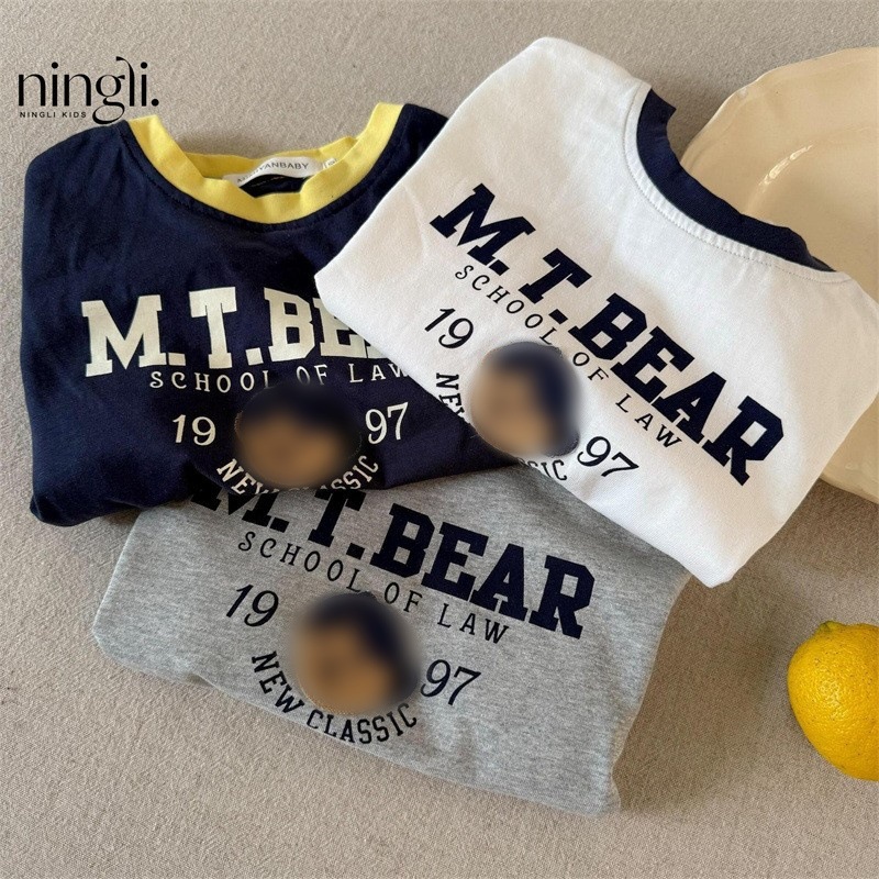 Ningli 어린이 반팔 2025 여름 일본 유행 브랜드 만화 편지 T 아기 어린이 서양식 반팔 티셔츠 소년 소녀스토어 가기
