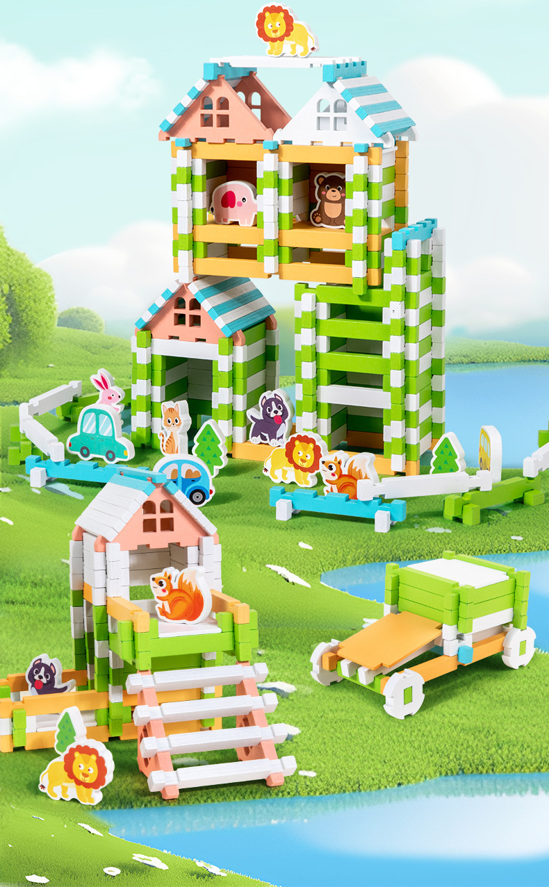 어린이 루반 장례 및 테논 구조 건물 블록 조기 교육 창조적 인 공간 건설 조립 된 건물 실습 목재 교육 장난감