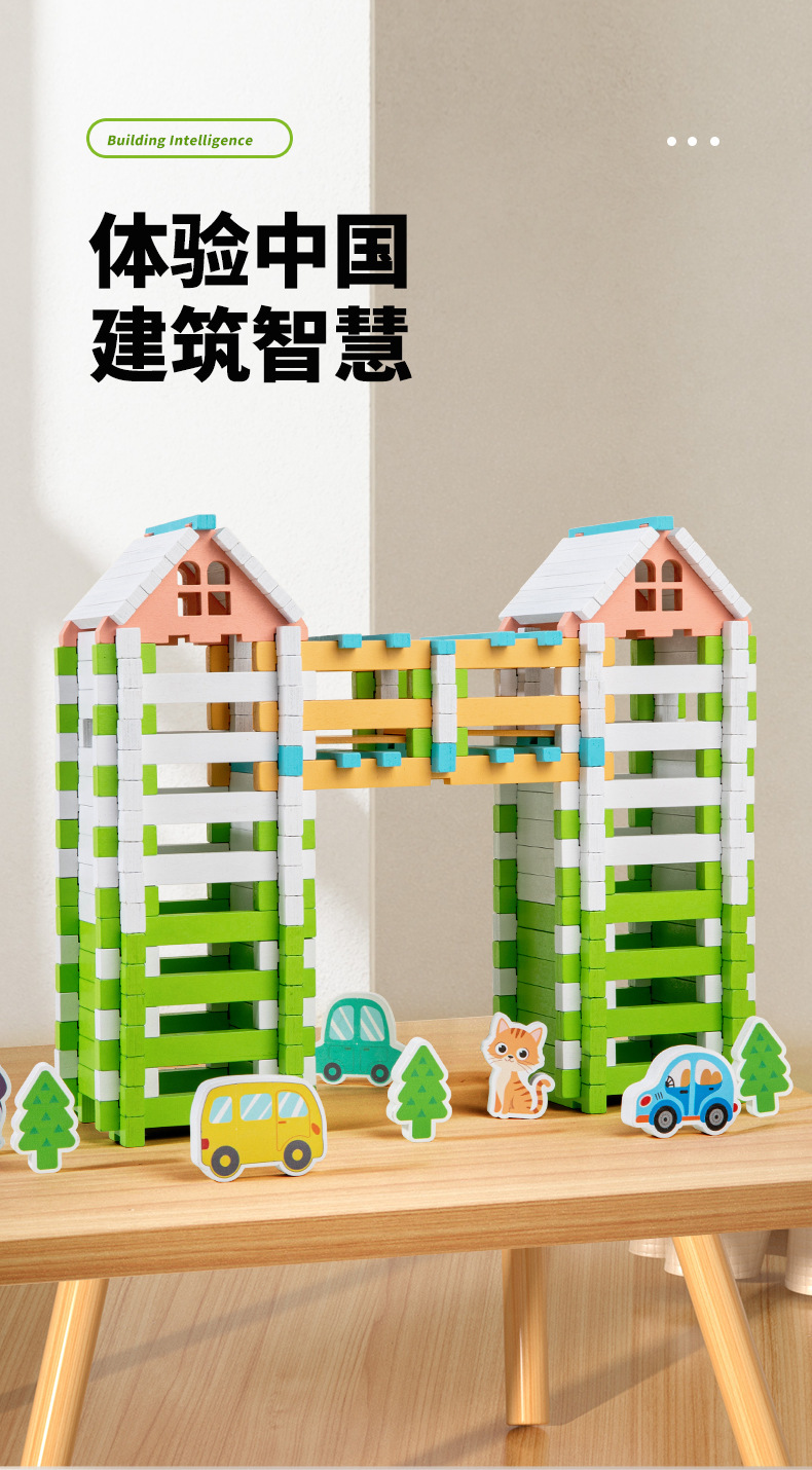 어린이 루반 장례 및 테논 구조 건물 블록 조기 교육 창조적 인 공간 건설 조립 된 건물 실습 목재 교육 장난감스토어 가기