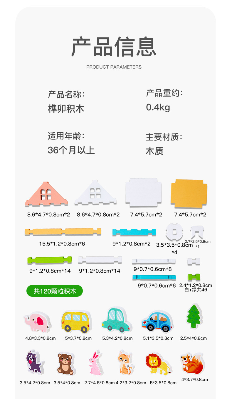 • 루반 장붓구멍과 장부 빌딩 블록 120개 [색상 상자]