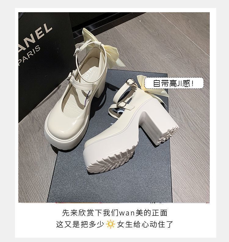 스파이스 걸스 화이트 하이힐 여성 2025 여름 새로운 방수 플랫폼 높이 증가 달콤한 활 메리 제인 작은 가죽 신발스토어 가기