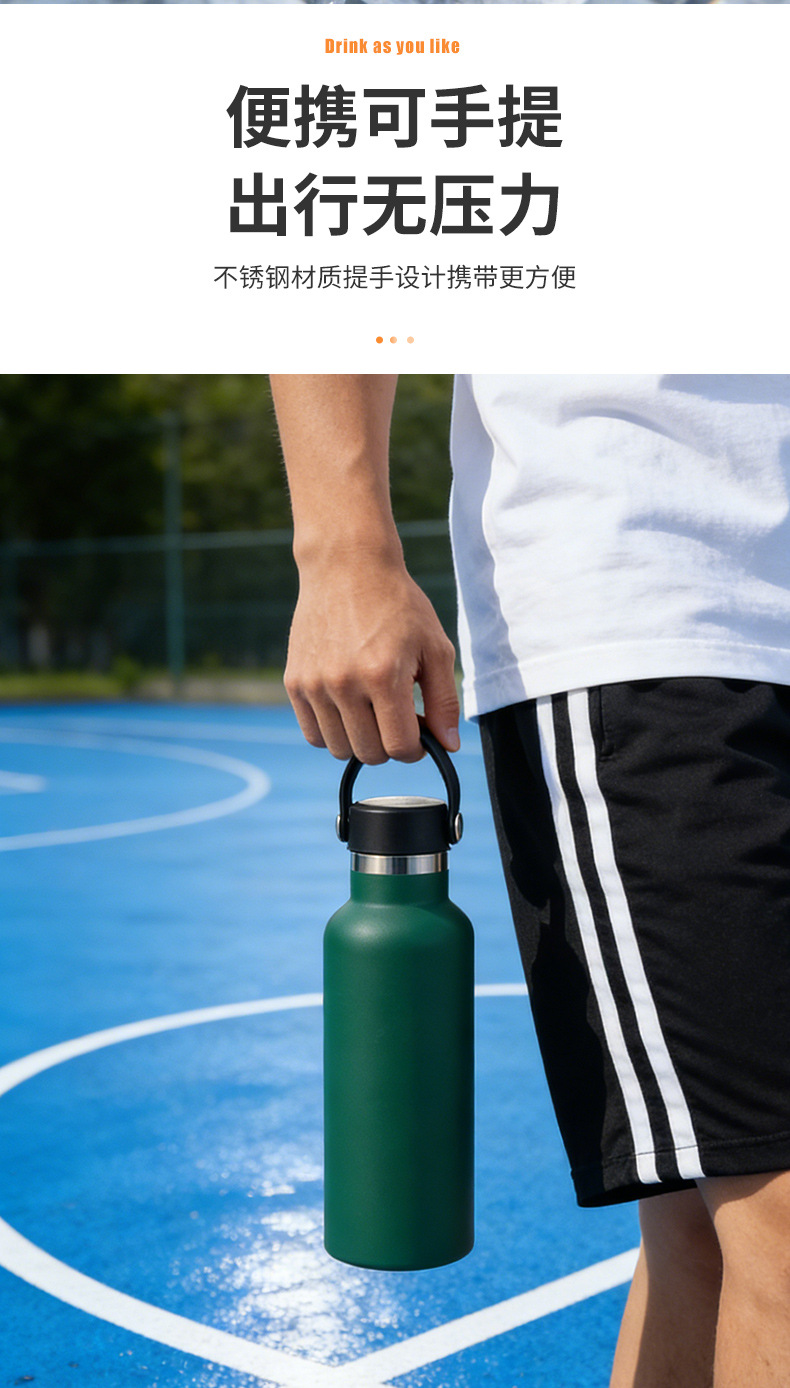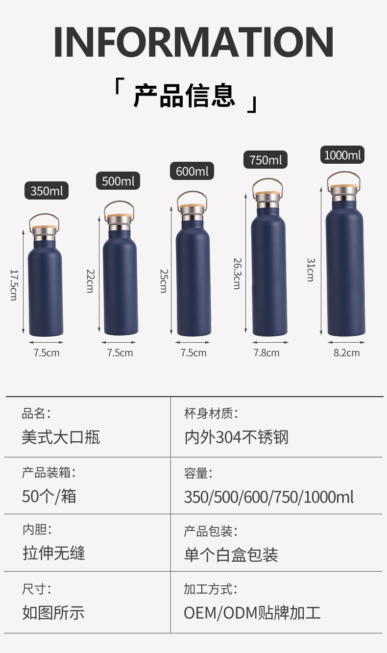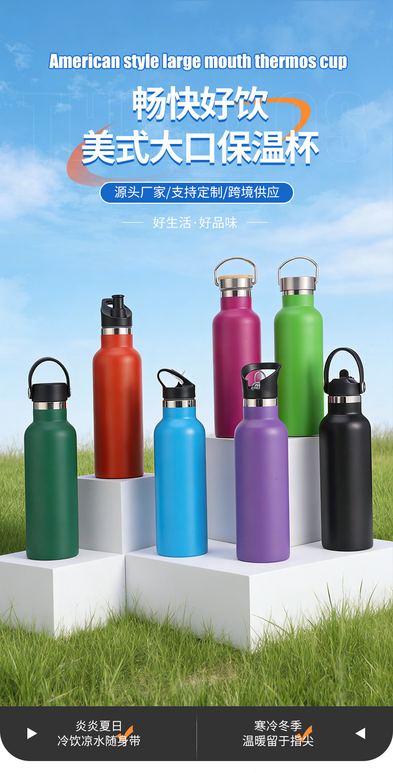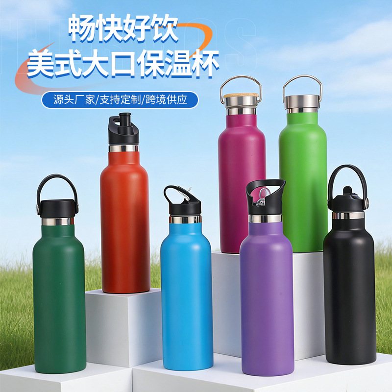 아마존 더블 레이어 두꺼운 미국 스타일 큰 입 병 스테인레스 스틸 휴대용 보온병 야외 등산 휴대용 스포츠 주전자