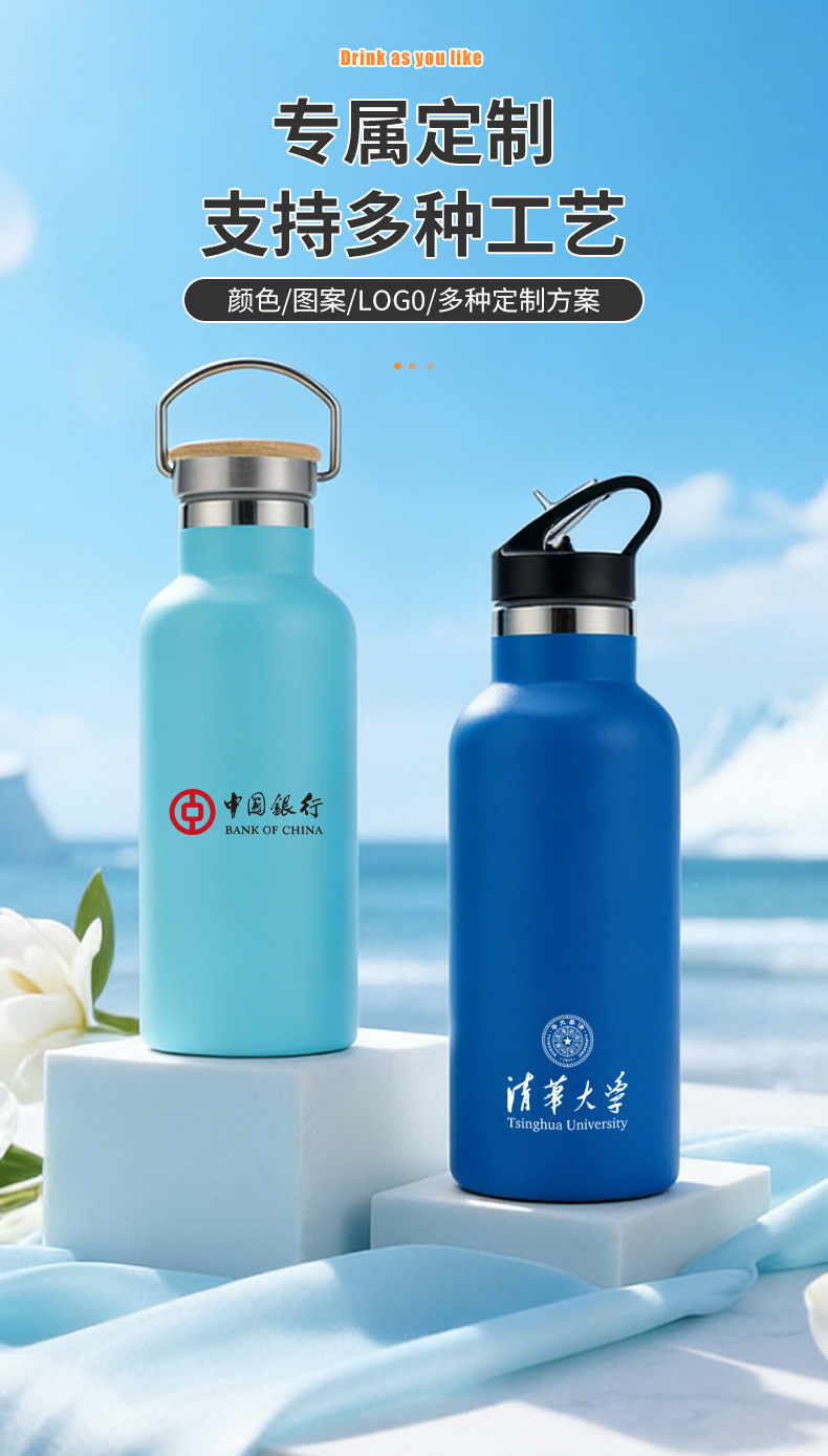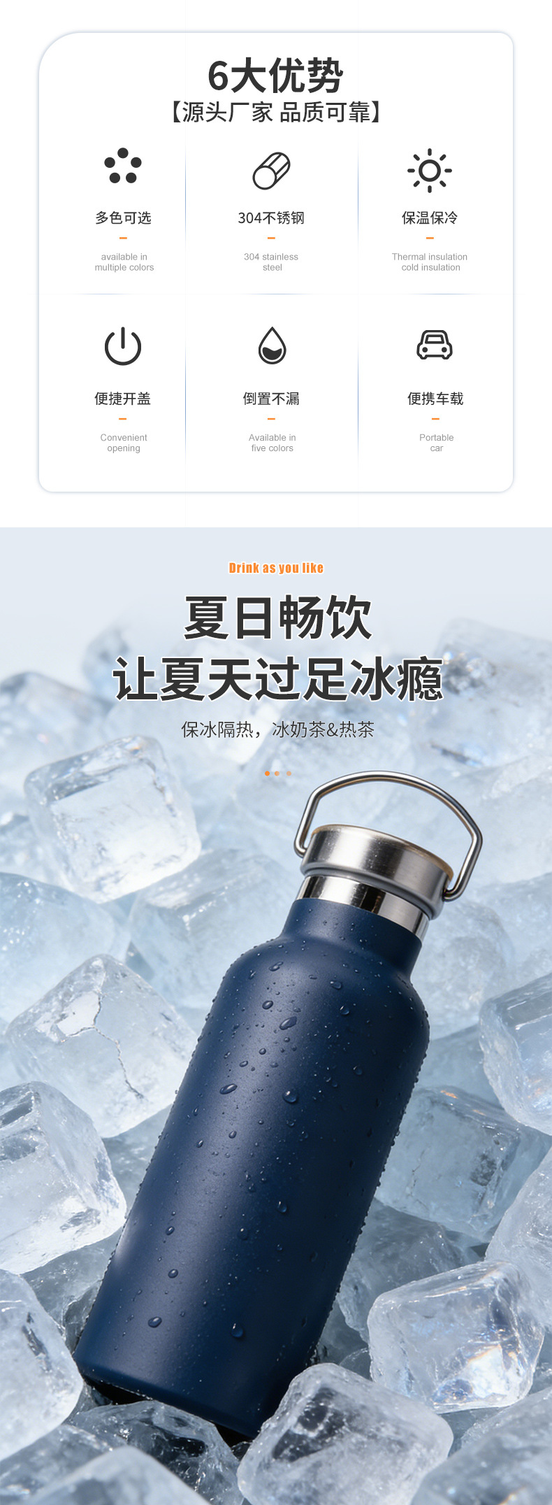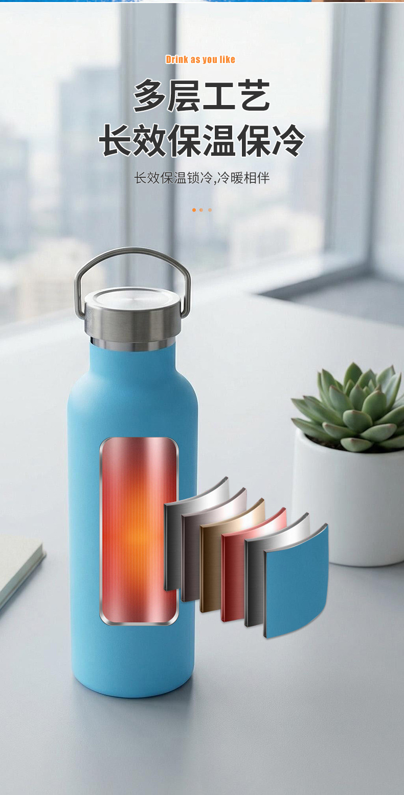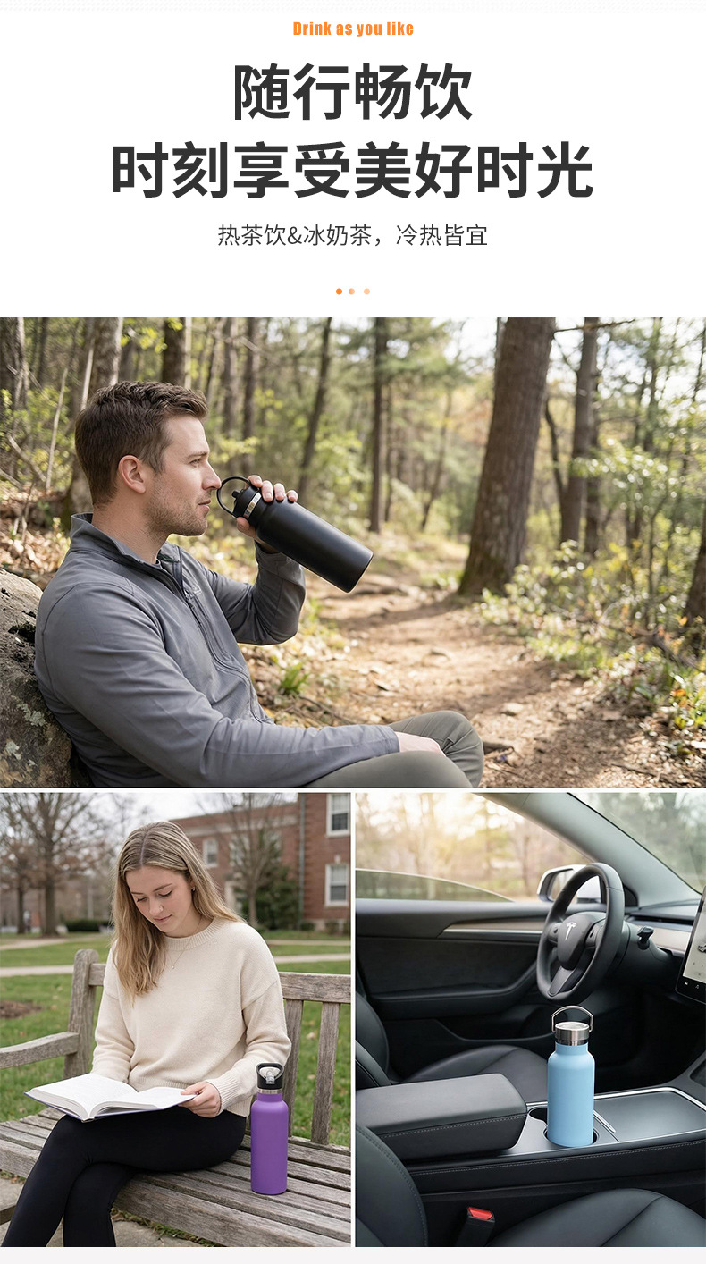 아마존 더블 레이어 두꺼운 미국 스타일 큰 입 병 스테인레스 스틸 휴대용 보온병 야외 등산 휴대용 스포츠 주전자