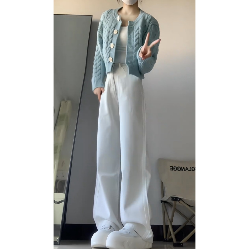 180 키 큰 긴 흰색 좁은 넓은 다리 청바지 여성 기모 느슨한 175 슈퍼 긴 직선 바지