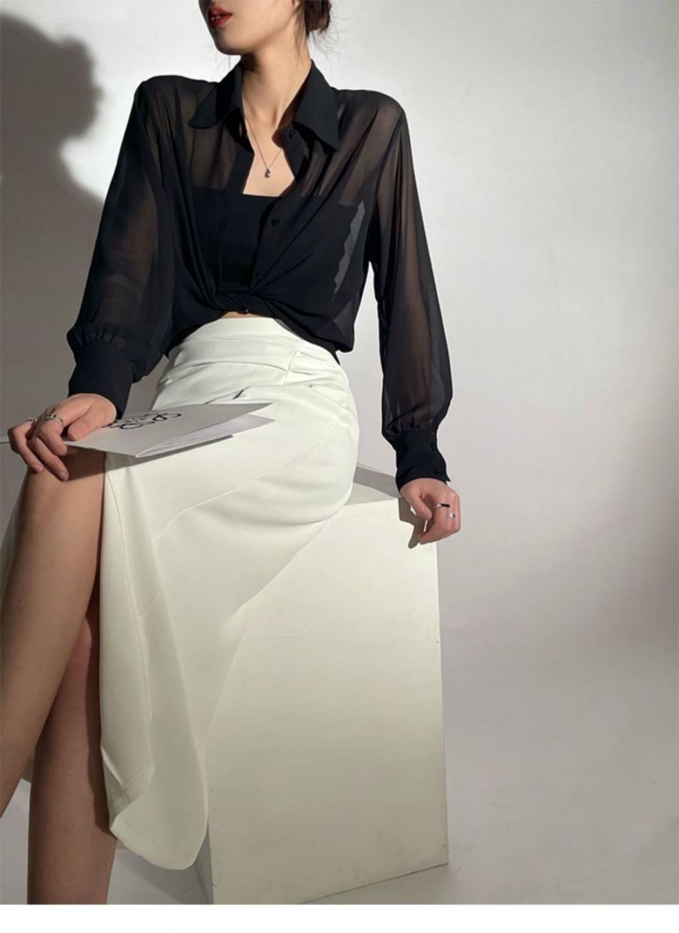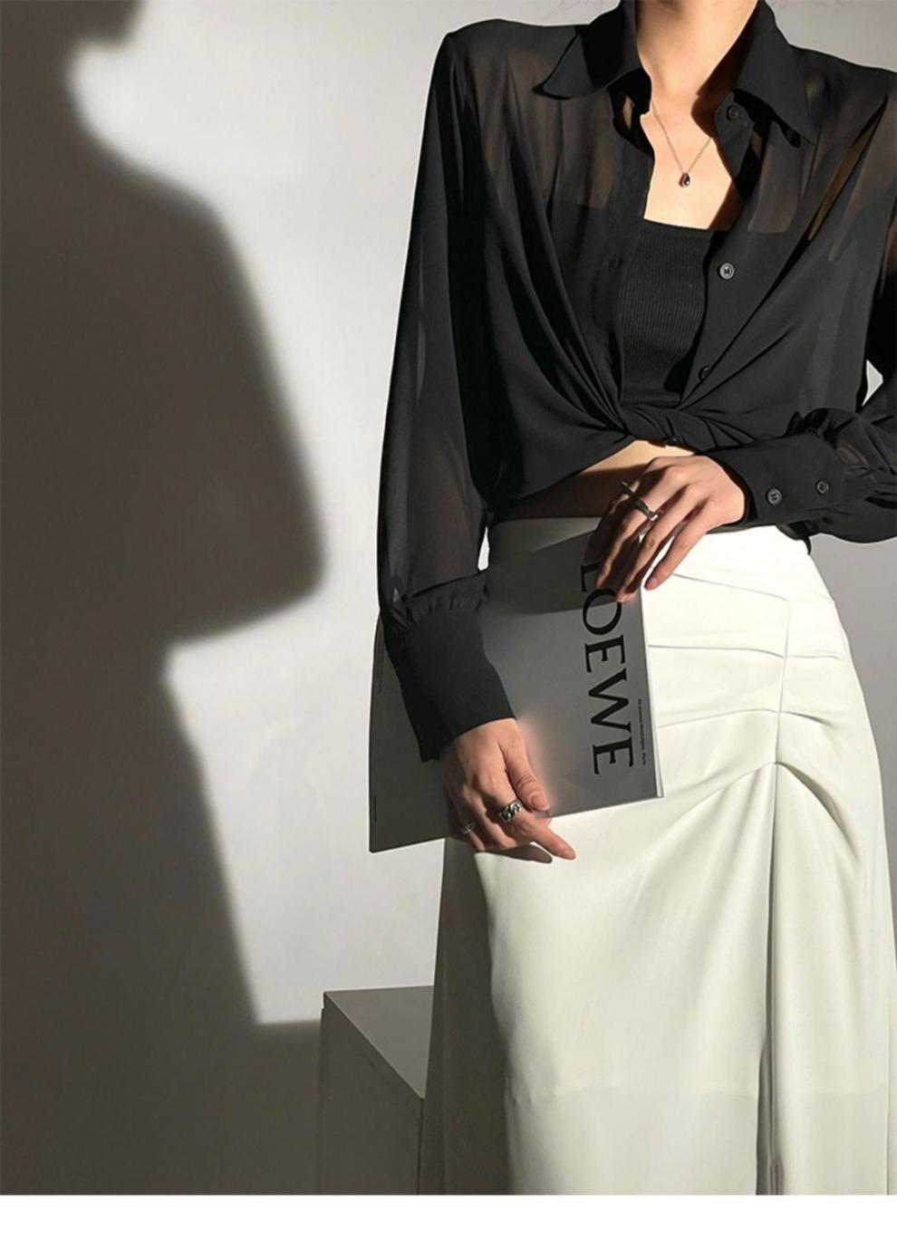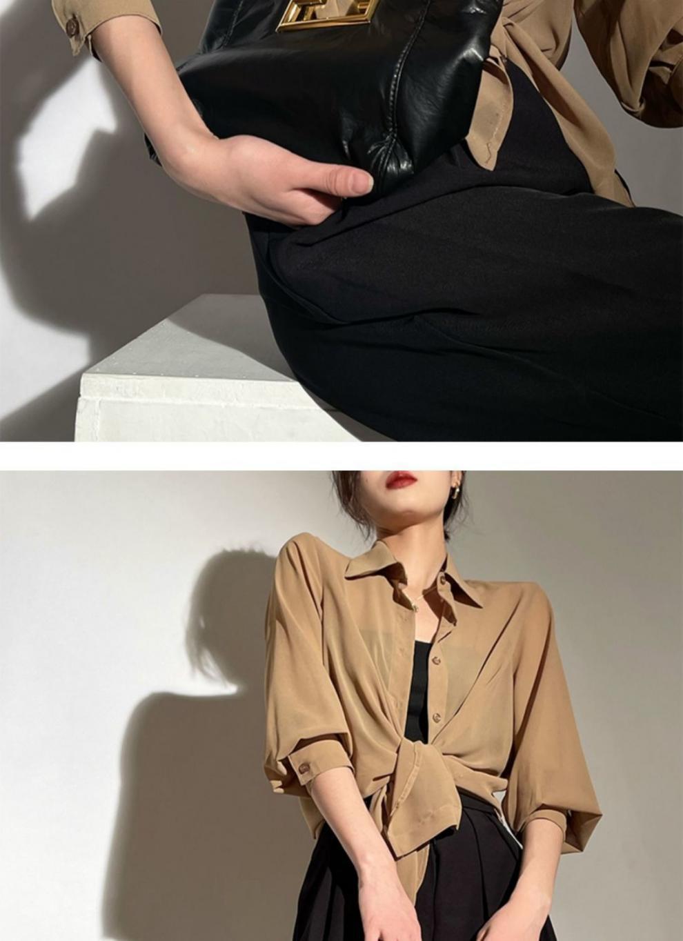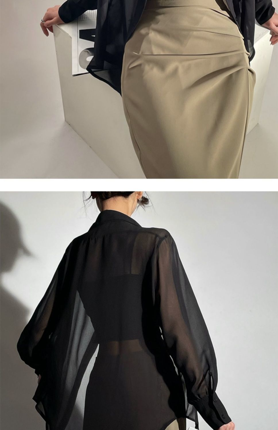 시폰 셔츠 여자 여름 2024 새로운 Tulle 슬링 카디건 외부 착용 선 스크린 얇은 탑 코트스토어 가기