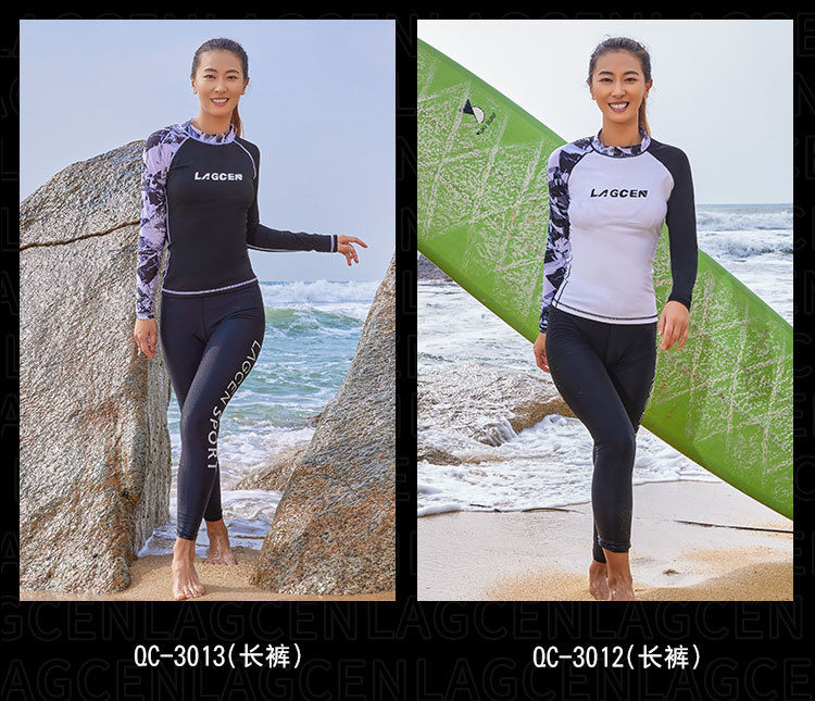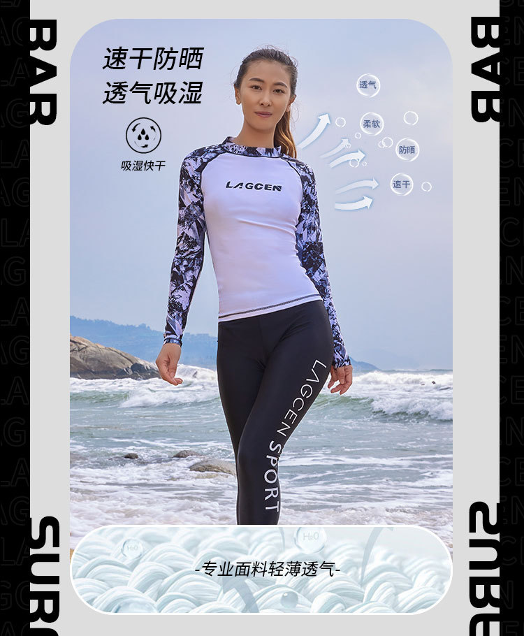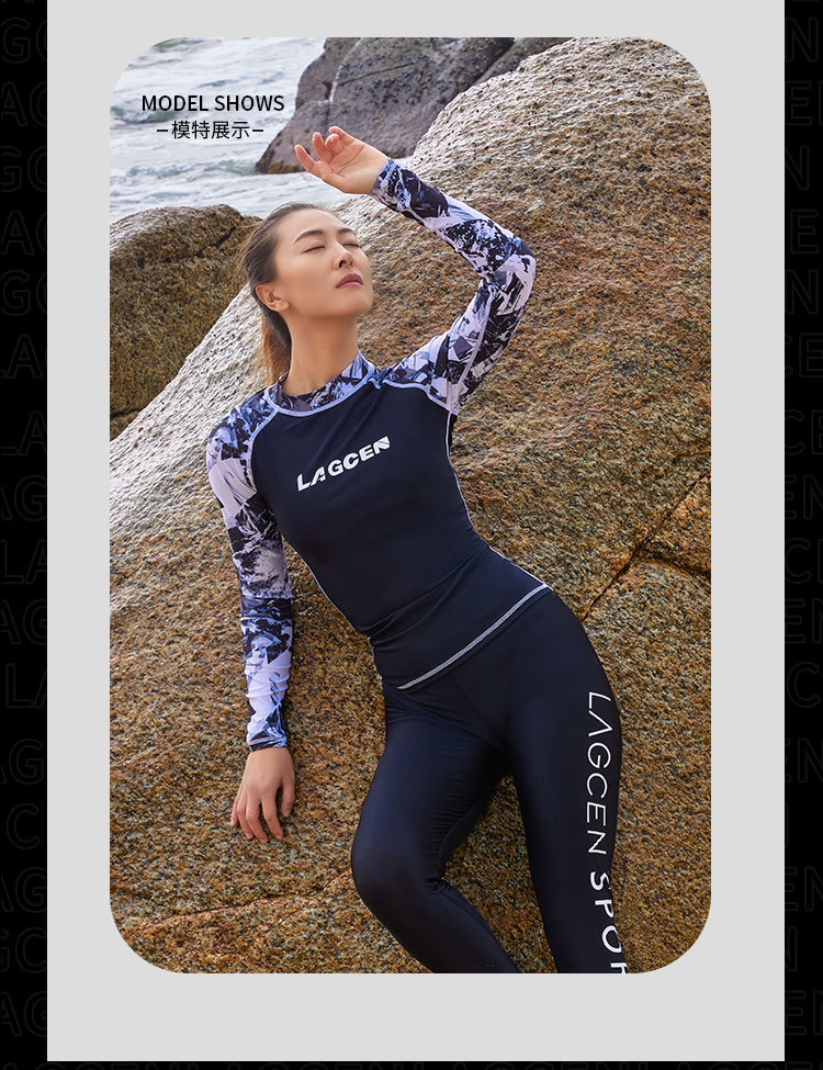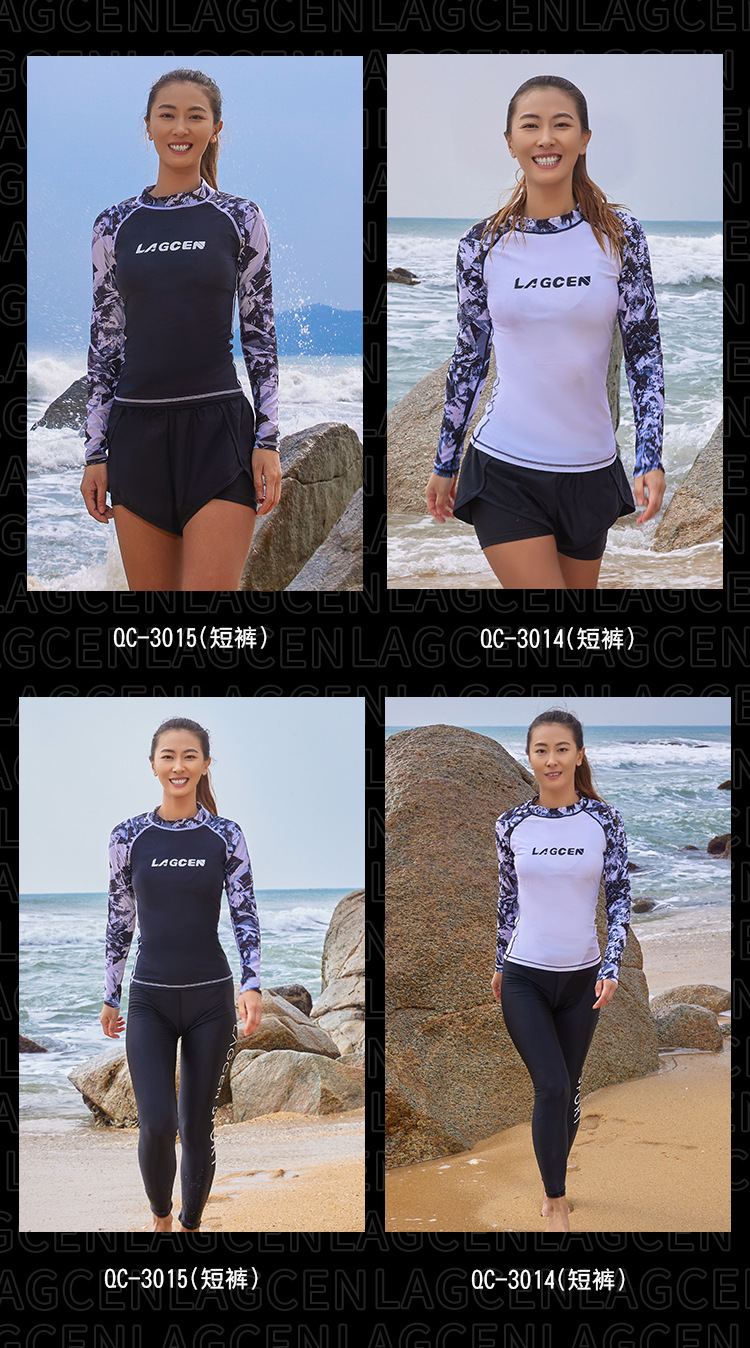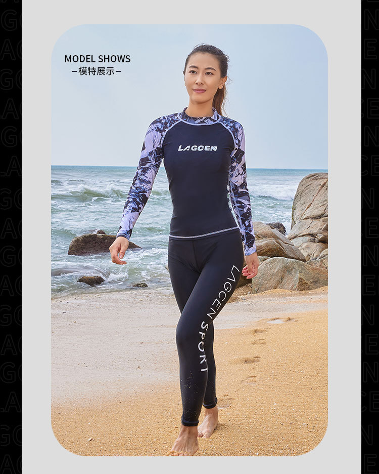 LAGCEN Long Morning 여성 스플릿 스노클링 수영복 보수적 인 슬리밍 긴 소매 바지 태양 방지 빠른 건조 서핑 세트 해파리 세트