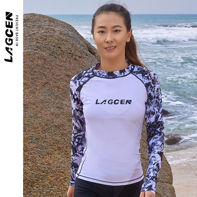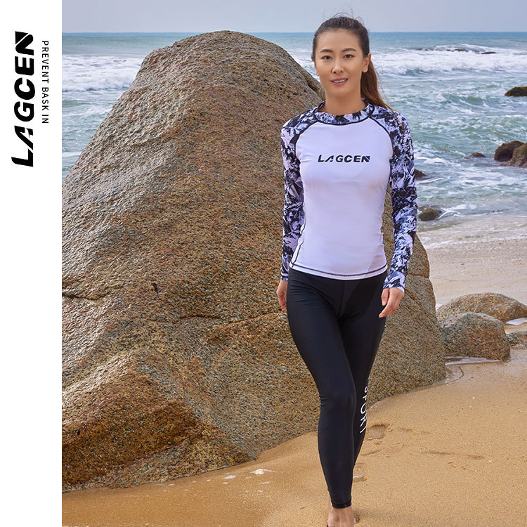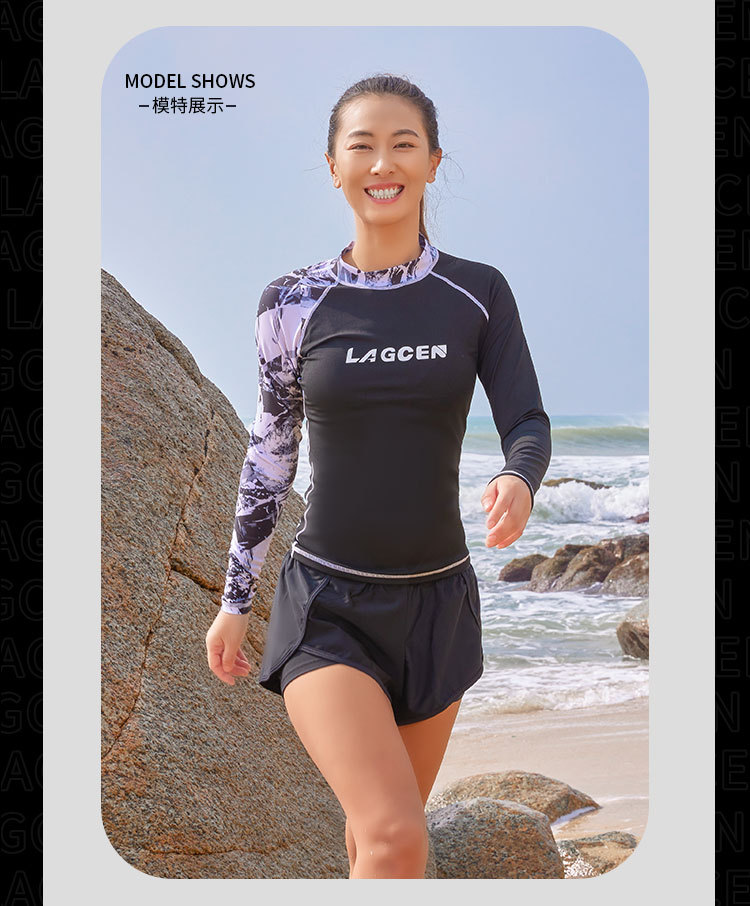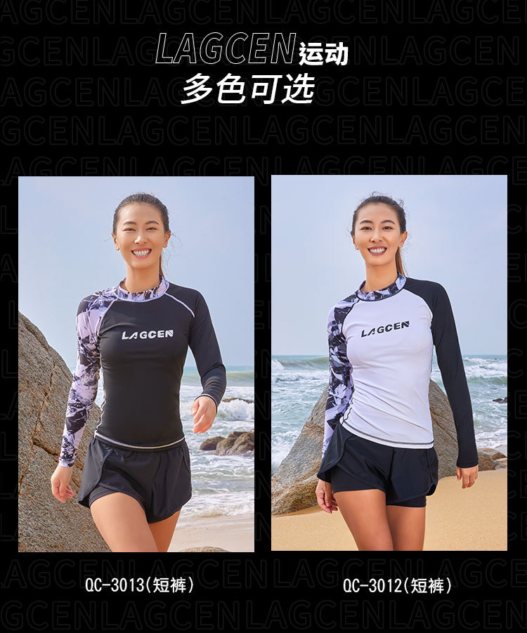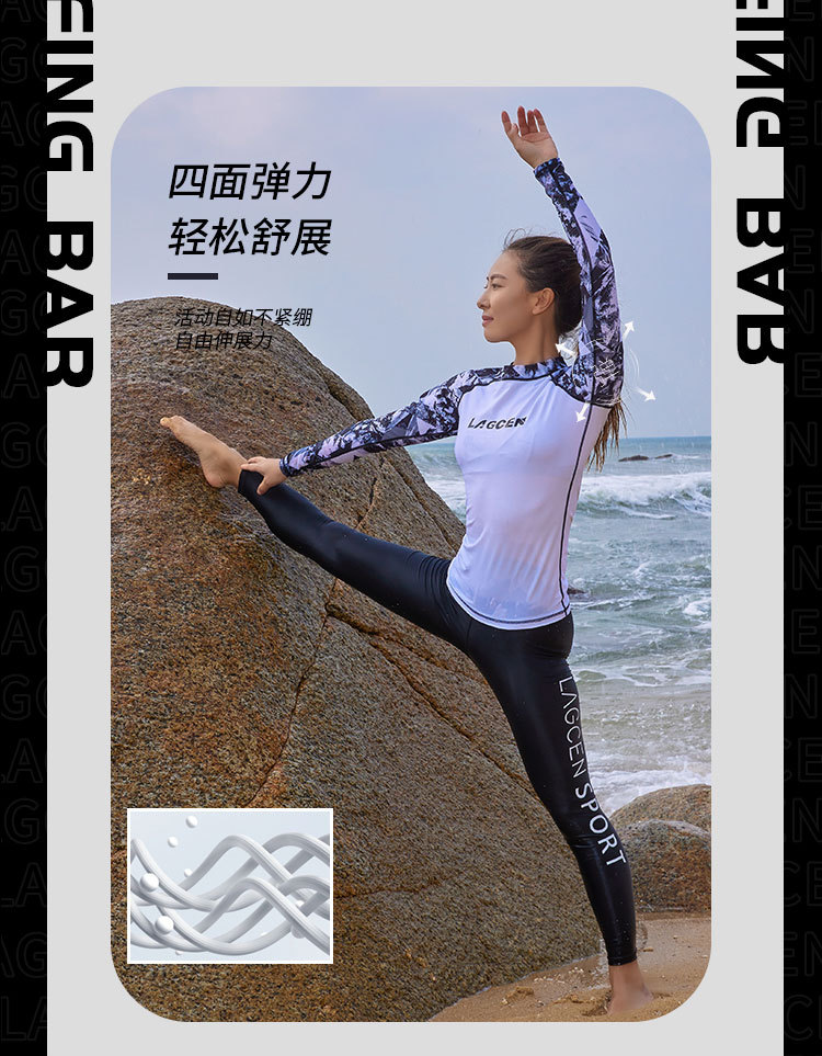 LAGCEN Long Morning 여성 스플릿 스노클링 수영복 보수적 인 슬리밍 긴 소매 바지 태양 방지 빠른 건조 서핑 세트 해파리 세트