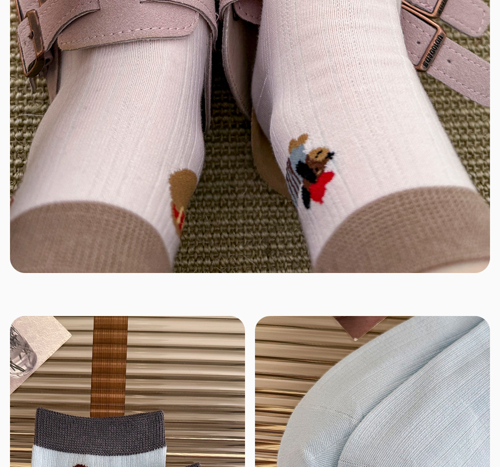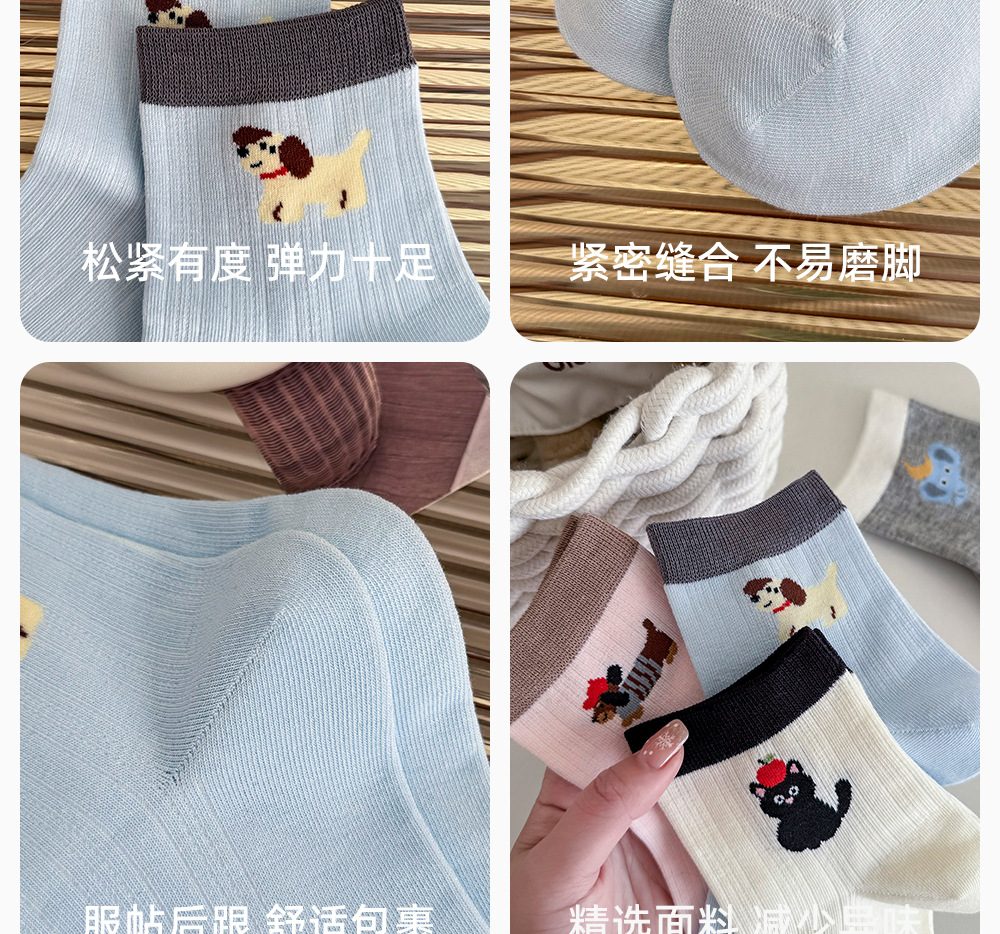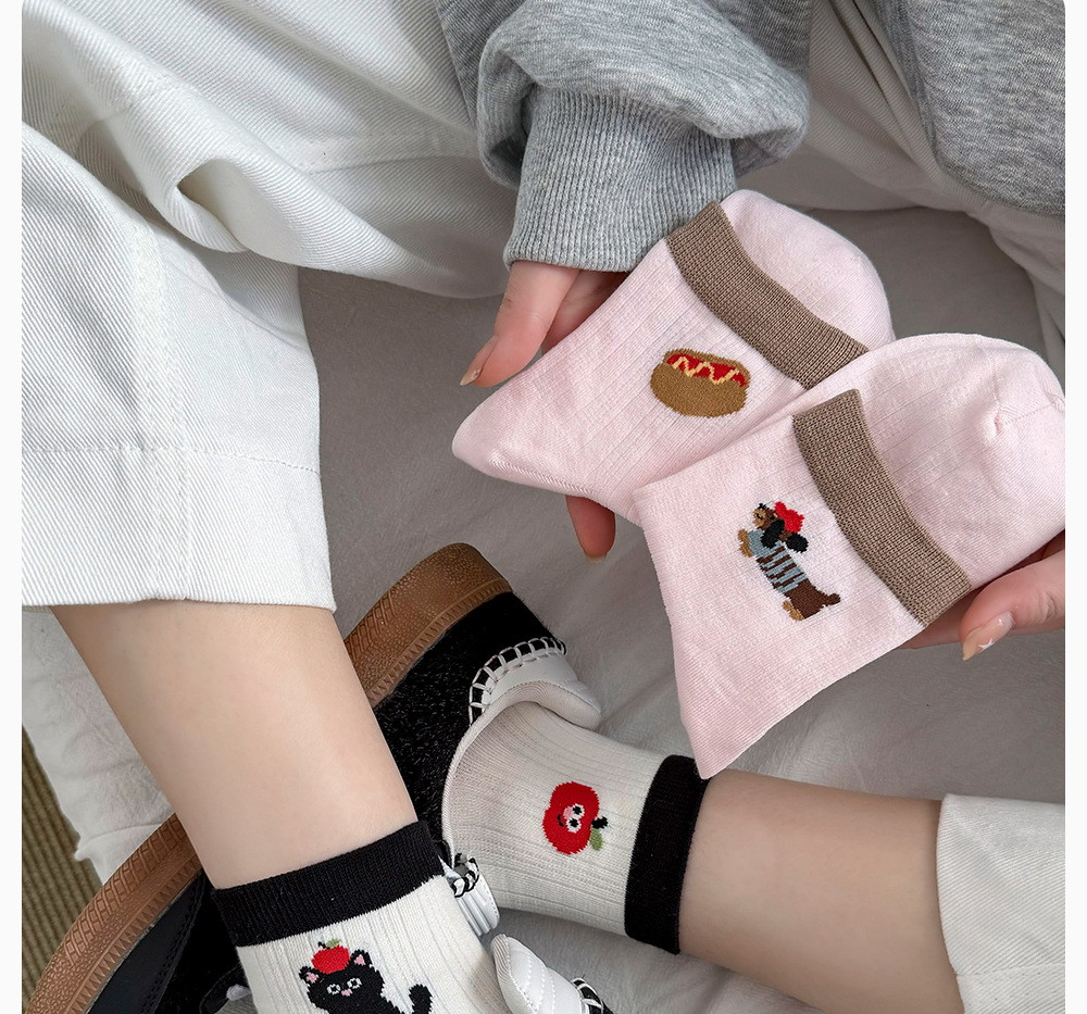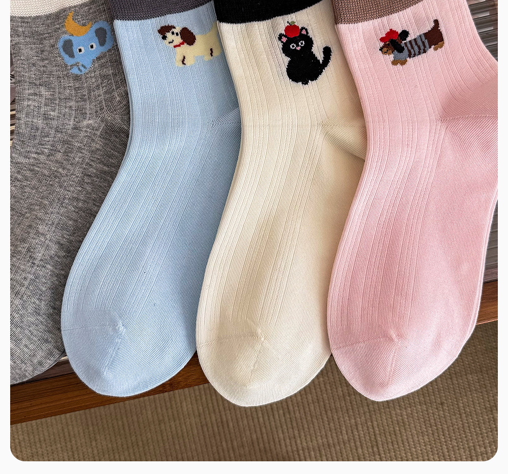 여성용 겨울용 순면 중목 양말 AB형 만화 강아지 무취 여성용 양말 항균 보풀방지 무봉제 양말 면양말스토어 가기