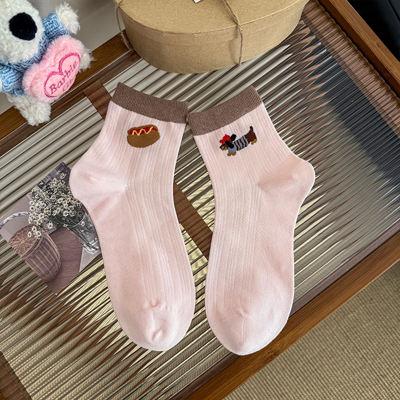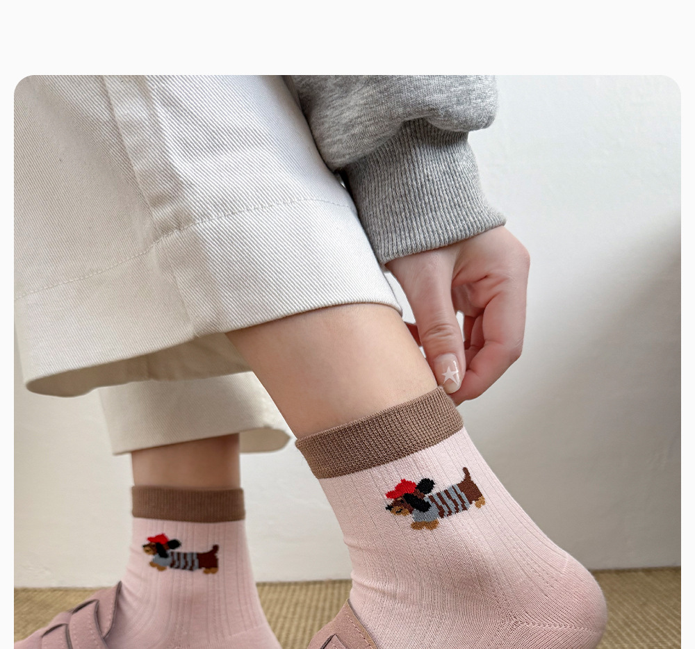 여성용 겨울용 순면 중목 양말 AB형 만화 강아지 무취 여성용 양말 항균 보풀방지 무봉제 양말 면양말
