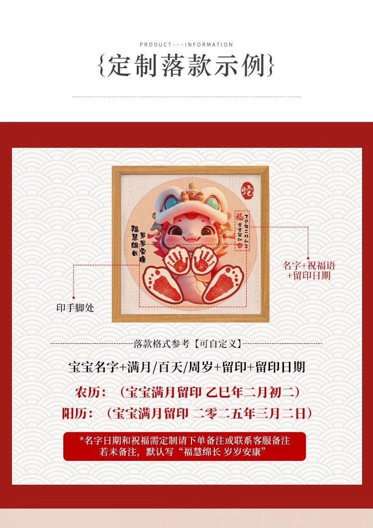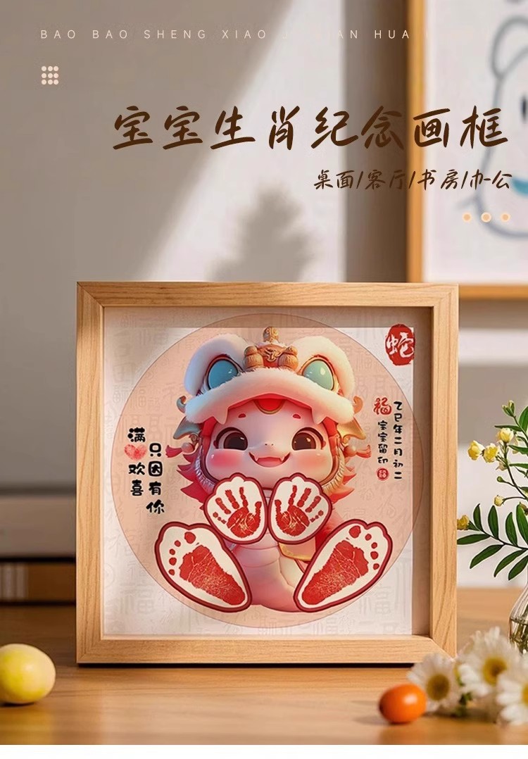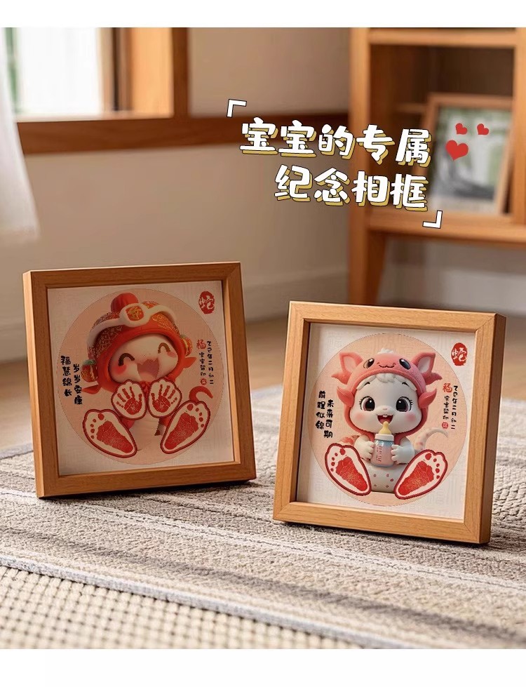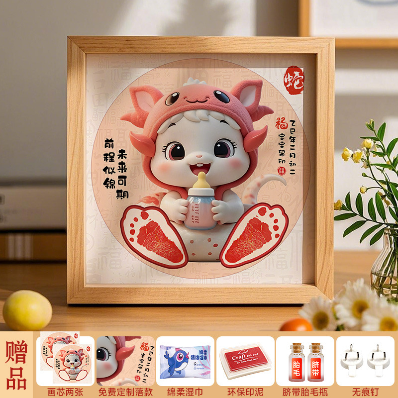 뱀 아기 보름달 손과 발 인쇄 사진 프레임 신생아 아기 출생 손과 발자국 기념품 100 일 소품스토어 가기
