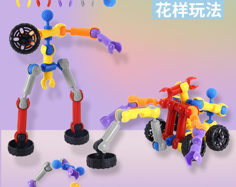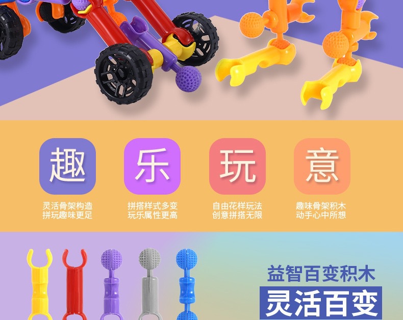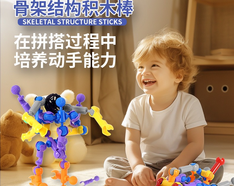 해골 빌딩 블록 어린이 관절 스틱 퍼즐 조립 지능 개발 대형 입자 빌딩 블록 유치원 조기 교육 장난감스토어 가기