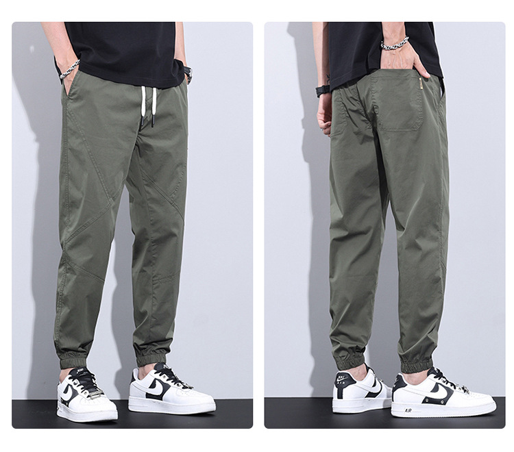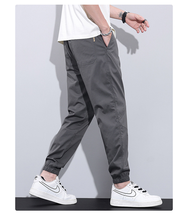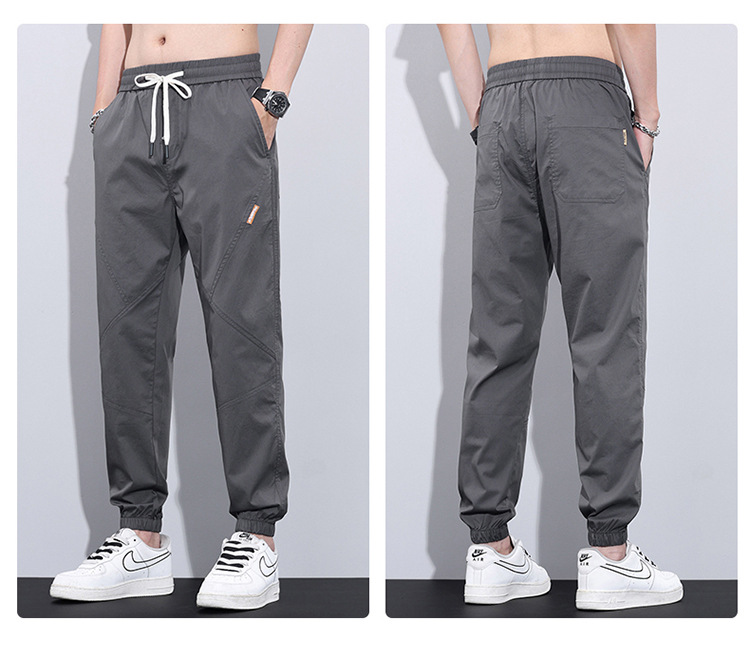 여름 얇은 발목 바지 남자의 느슨한 스포츠 빠른 건조 긴 바지 남자 아이스 산소 한국 스타일 작업복 캐주얼 바지