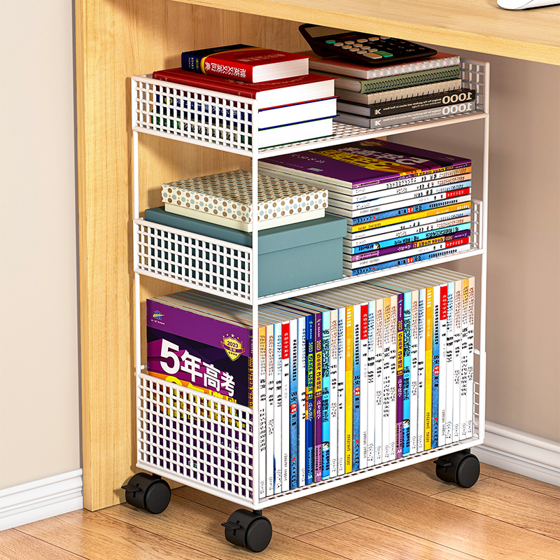 책상 옆 테이블 선반 아래 작은 책장 이동식 바닥 바닥 책상 바퀴 옆 카트 책 보관 Lu ZM