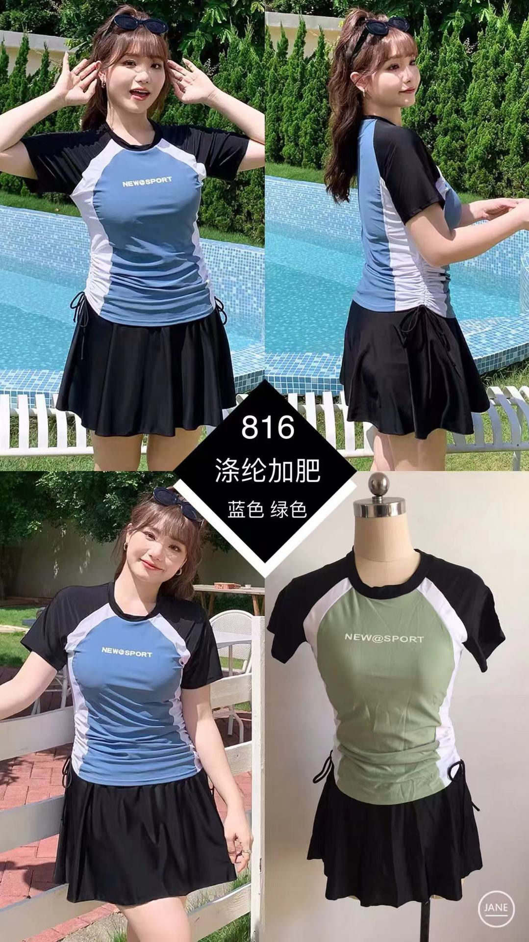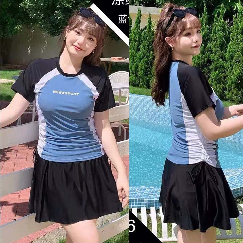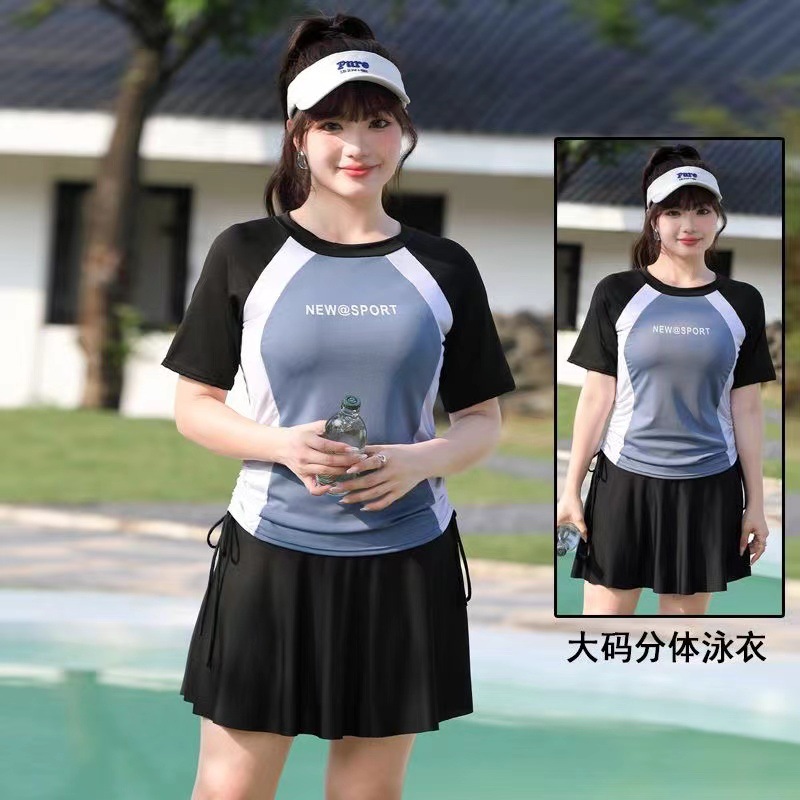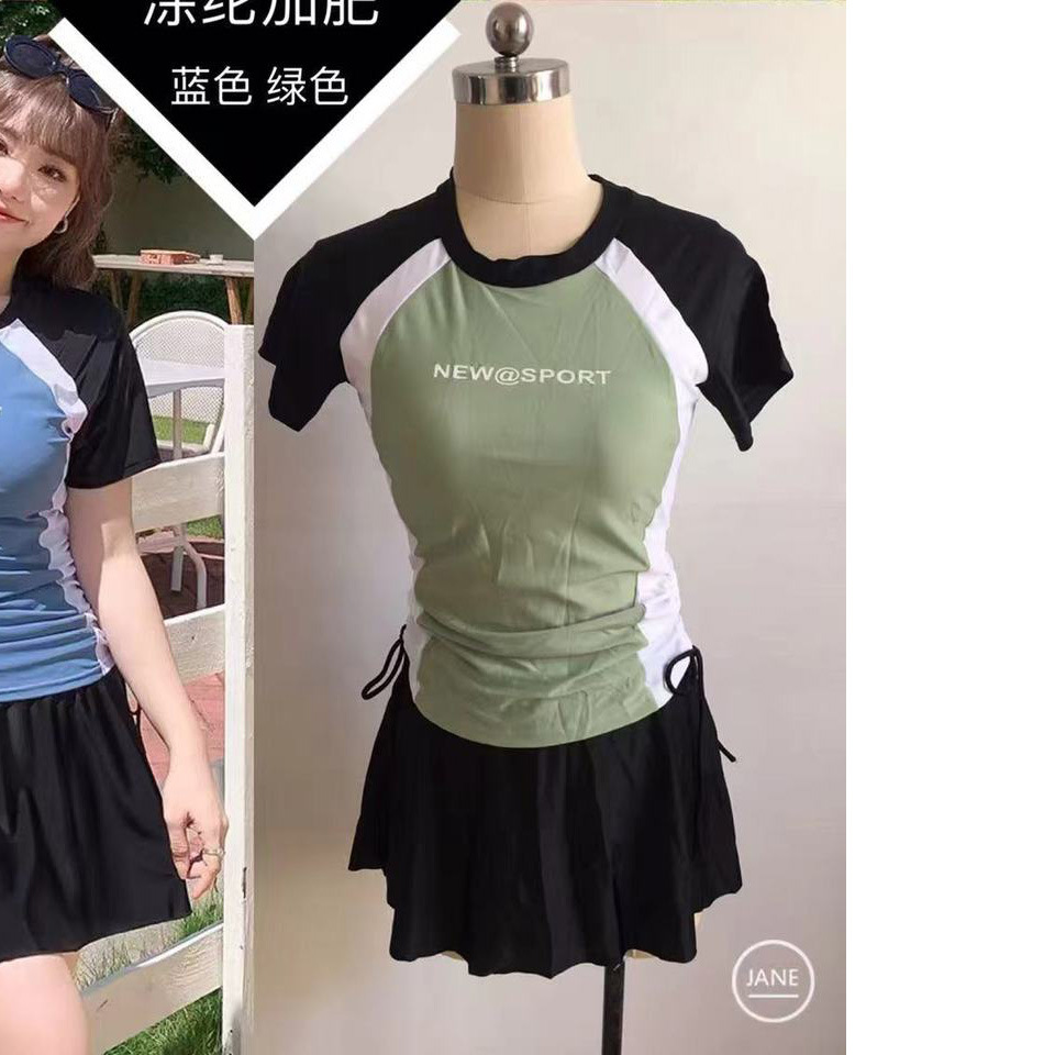 150 진 통비 자매 플러스 사이즈 수영복 보수적 인 높은 허리 스커트 고기 커버 스포츠 짧은 소매 세트 눈부심 방지 복서스토어 가기