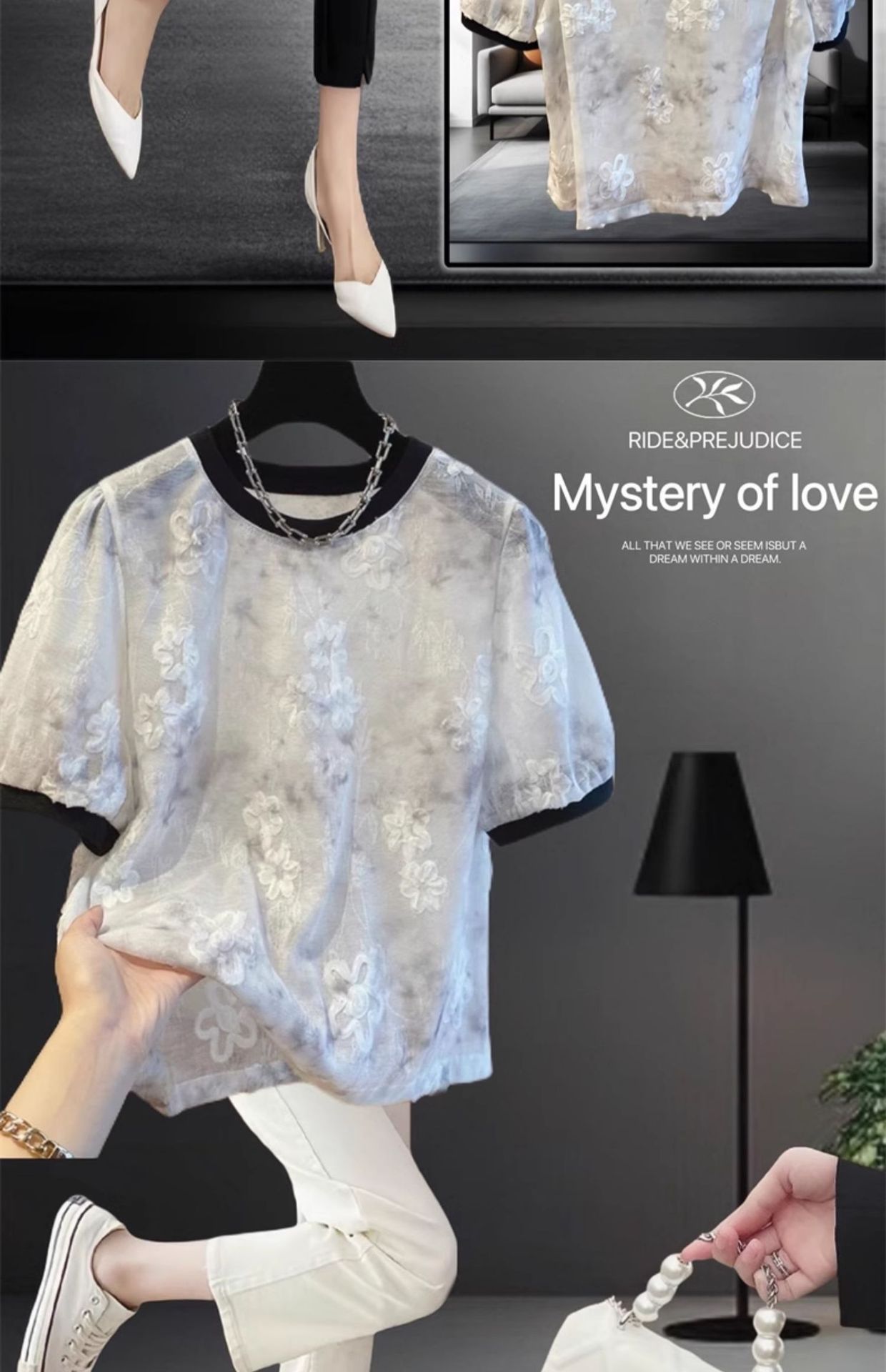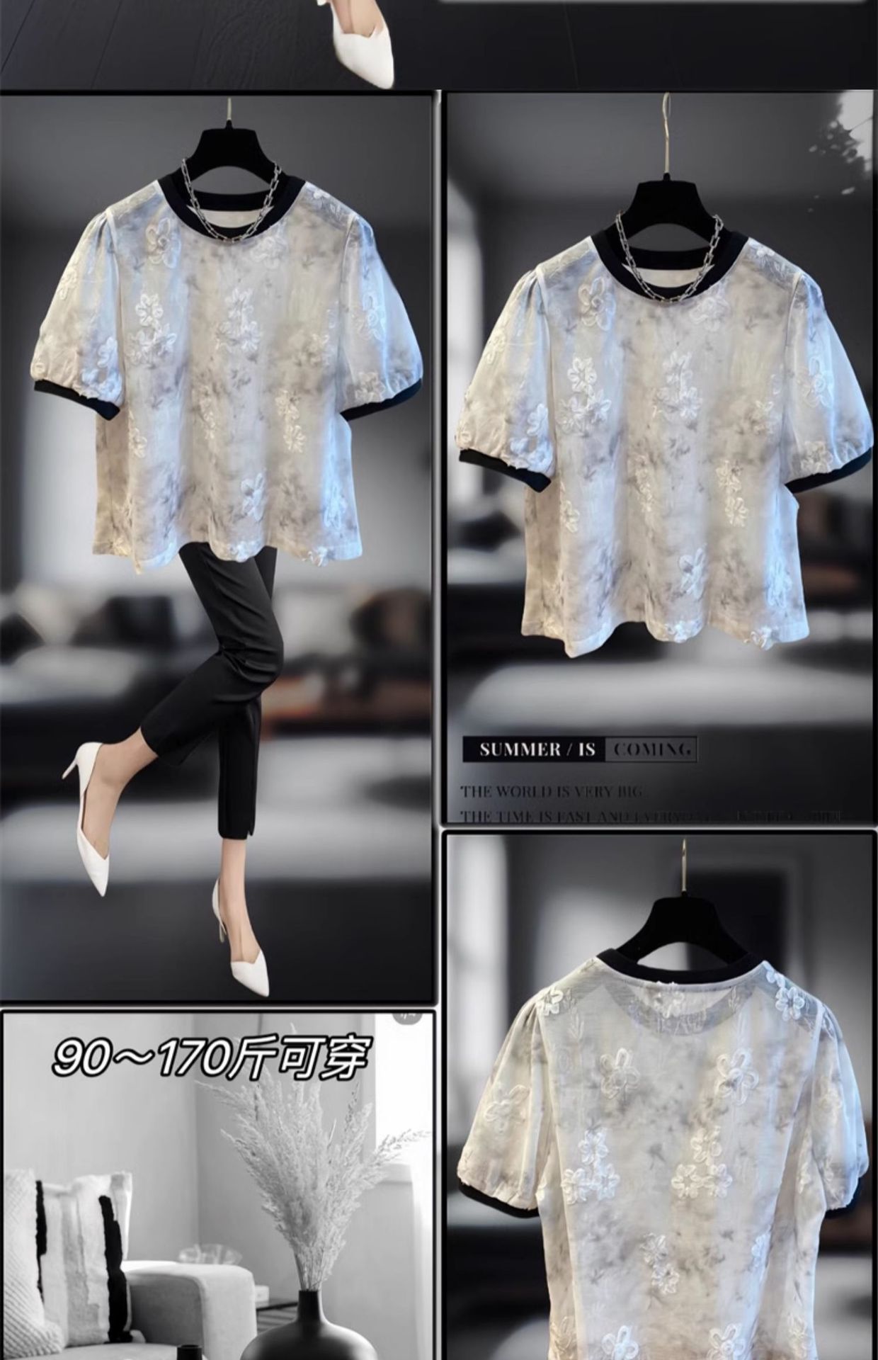 플러스 사이즈 여자 여름 하이 엔드 프린트 크루 넥 스위트 쉬폰 셔츠 최고의 여자 올 매치 에이지 감소 셔츠스토어 가기