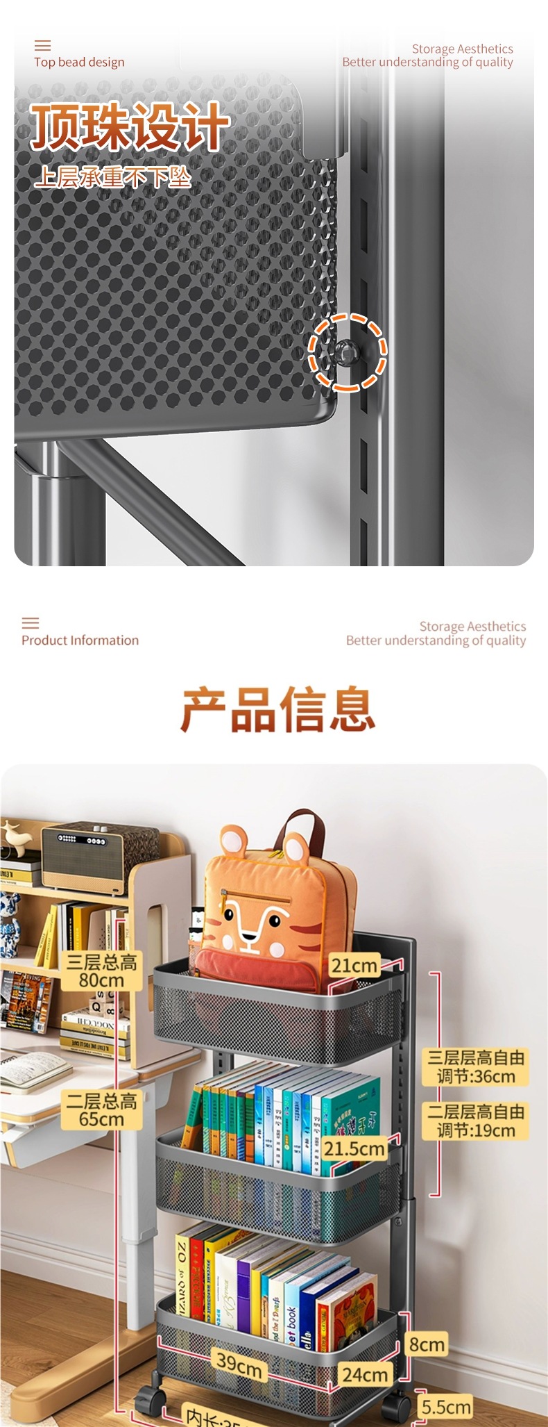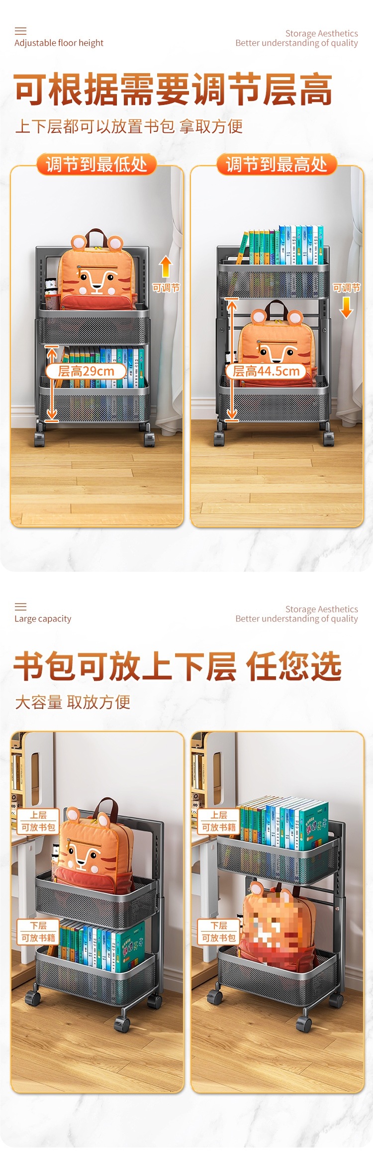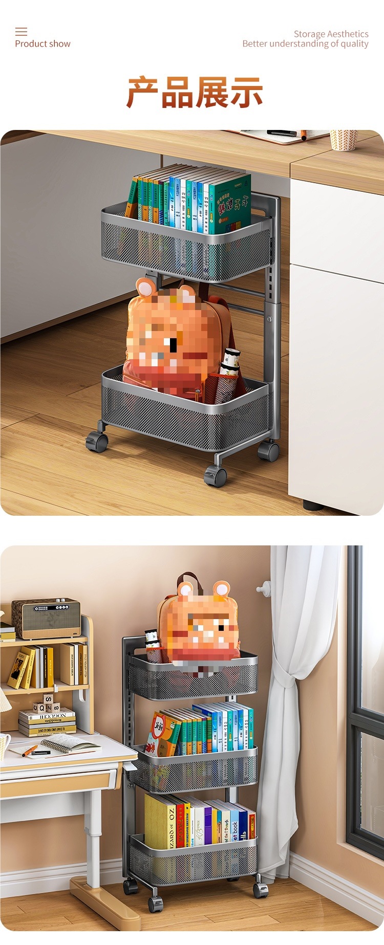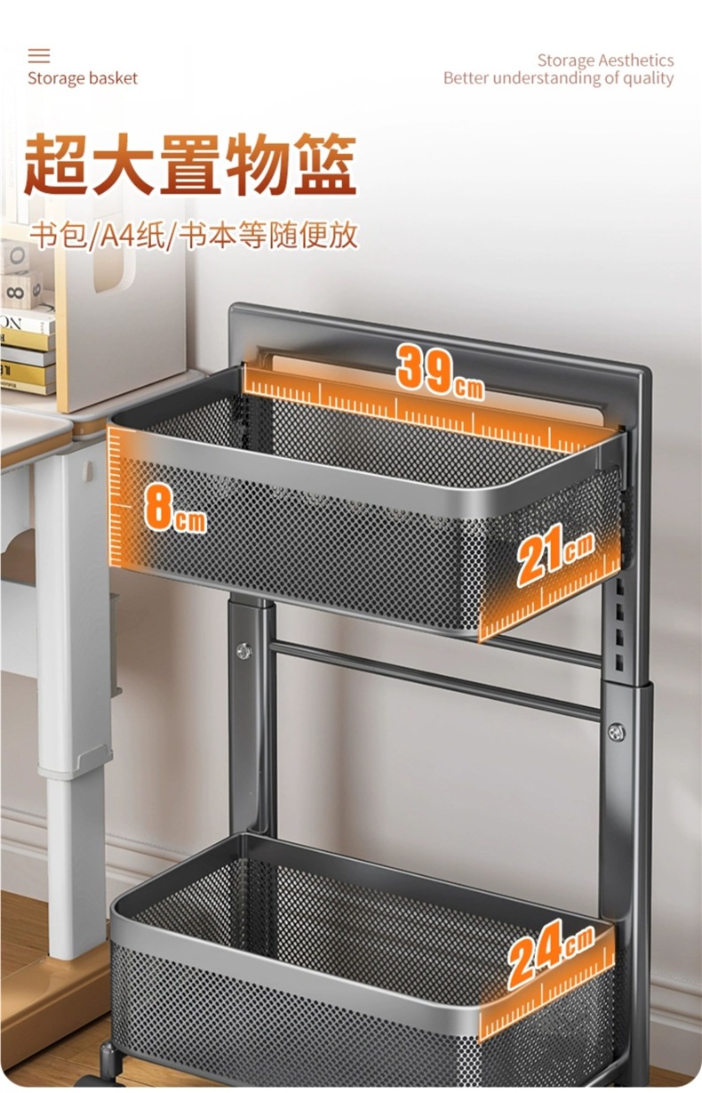 Schoolbag 스토리지 랙 중학교 학생의 바닥에 서있는 어린이 트롤리 스토리지 랙 아래에 책을 배치하기위한 이동식 책상