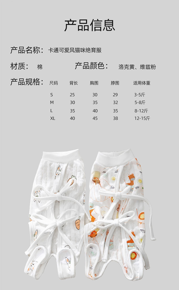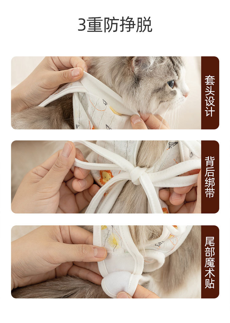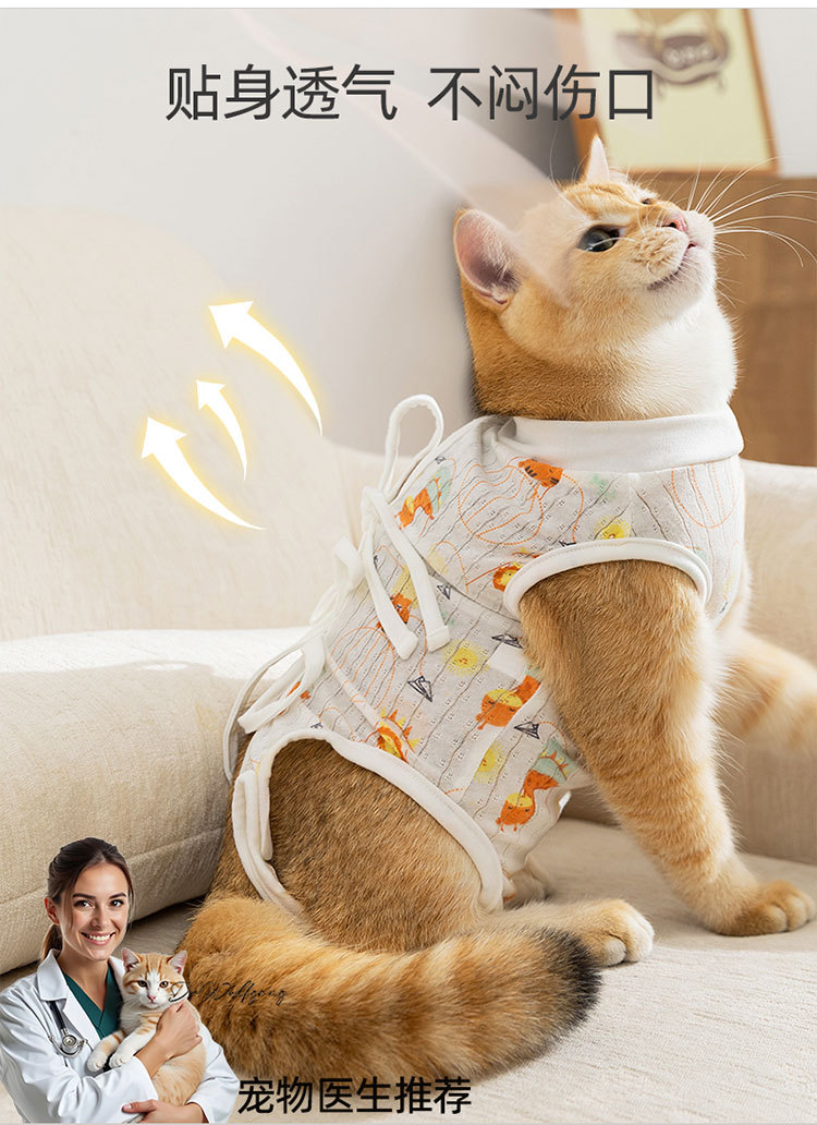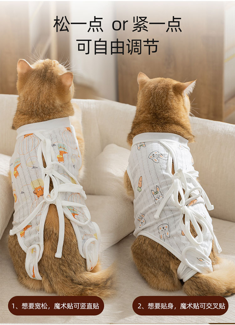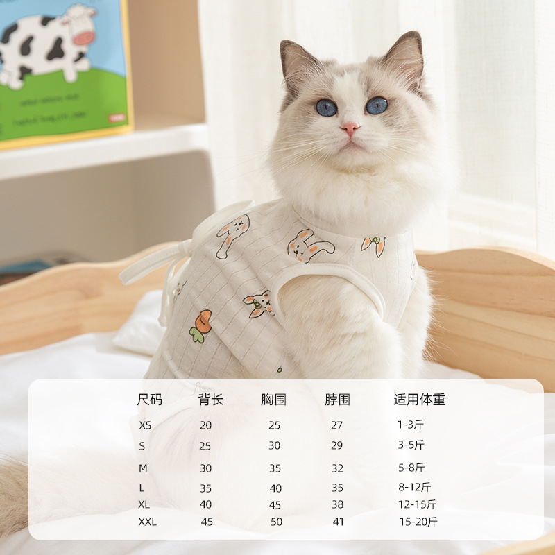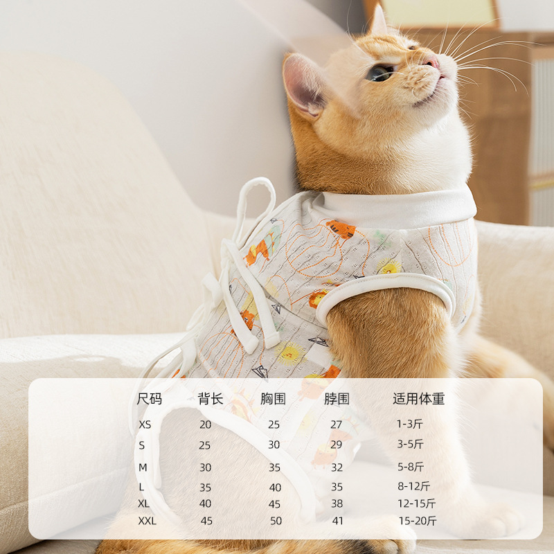 봄과 여름 만화 귀여운 바람 고양이 살균 의류 여성 고양이 이유 의류 조정 수술 후 보호 애완 동물 고양이 의류스토어 가기