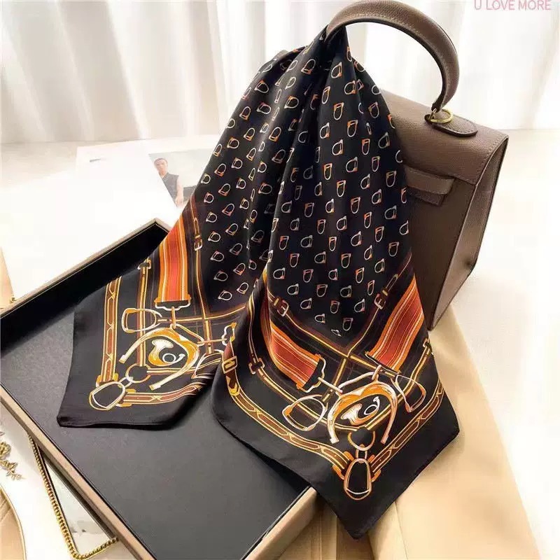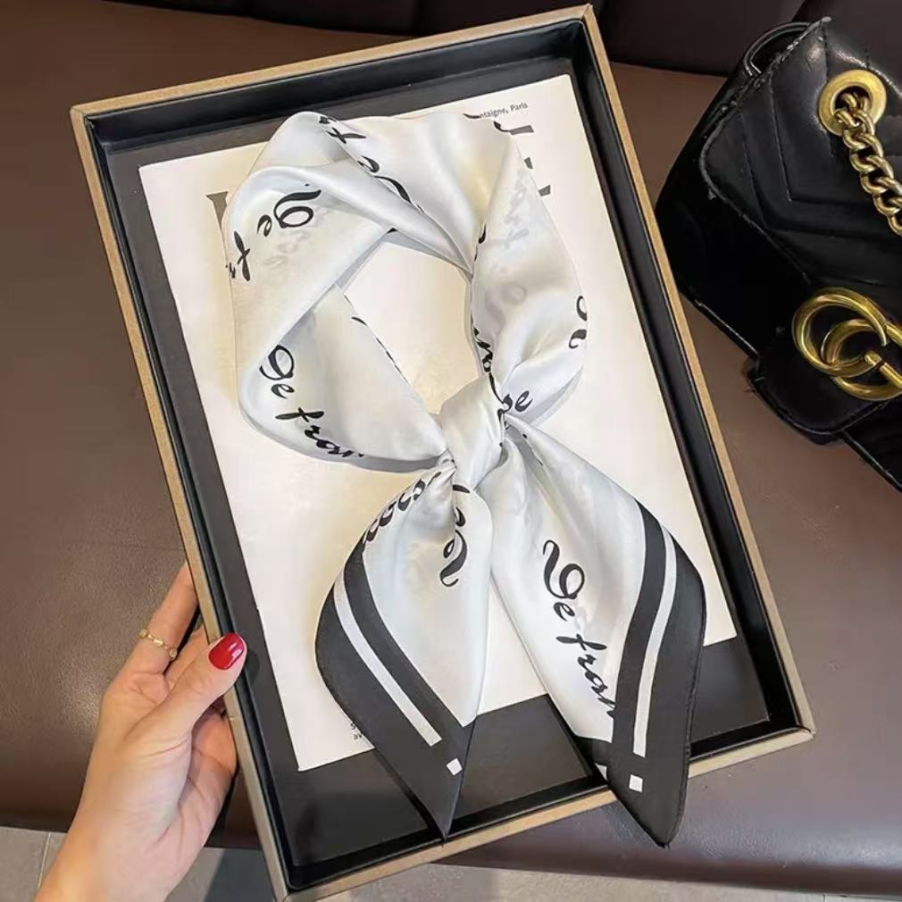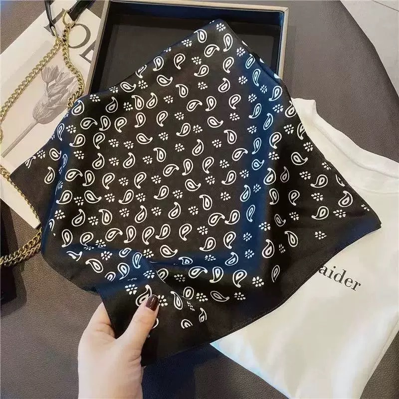 레트로 흑백 웨이브 도트 실크 70X70 작은 스퀘어 스카프 여성의 봄 가을과 겨울 스카프 얇은 스카프스토어 가기