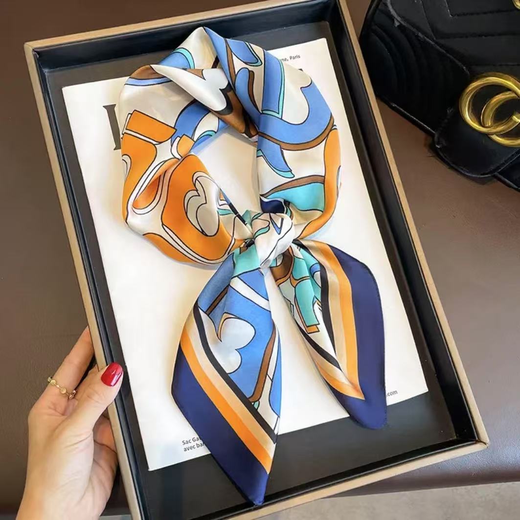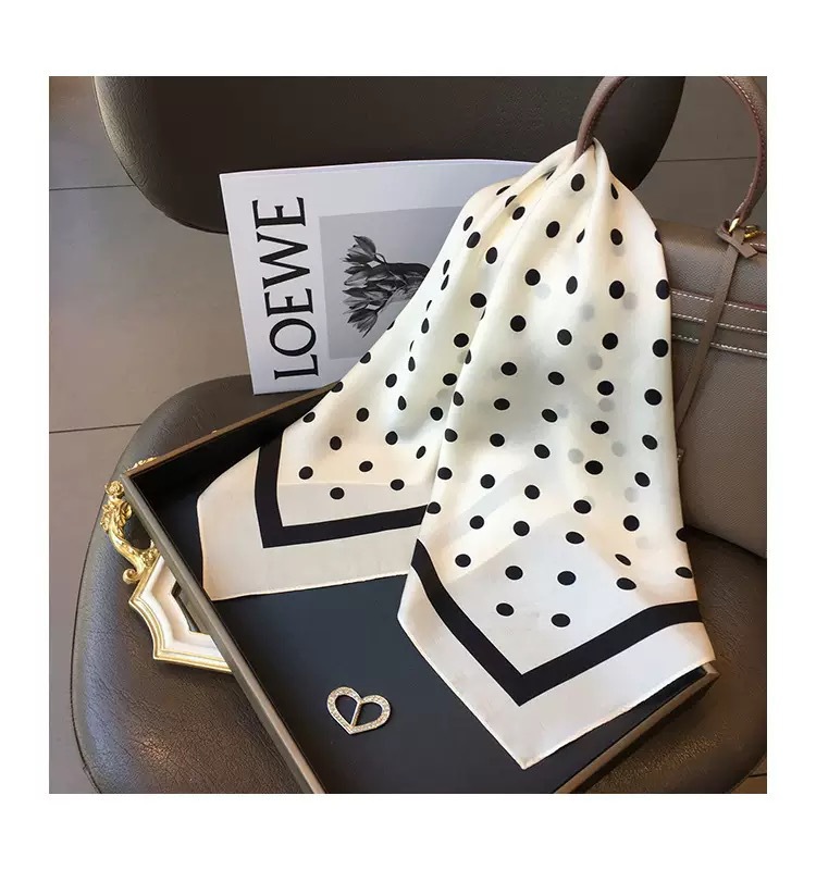 레트로 흑백 웨이브 도트 실크 70X70 작은 스퀘어 스카프 여성의 봄 가을과 겨울 스카프 얇은 스카프