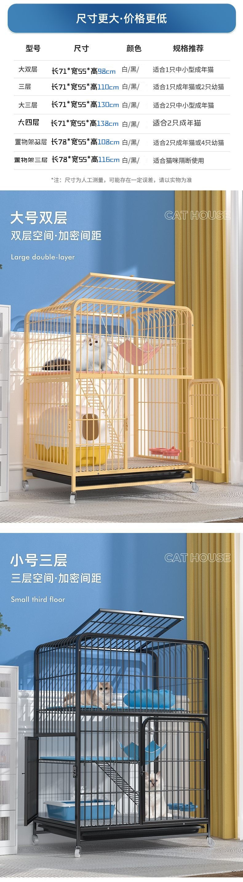고양이 케이지 홈 실내 초대형 프리 스페이스 접이식 일체형 더블 레이어 고양이 빌라 고양이 둥지 고양이 하우스 고양이 케이지스토어 가기