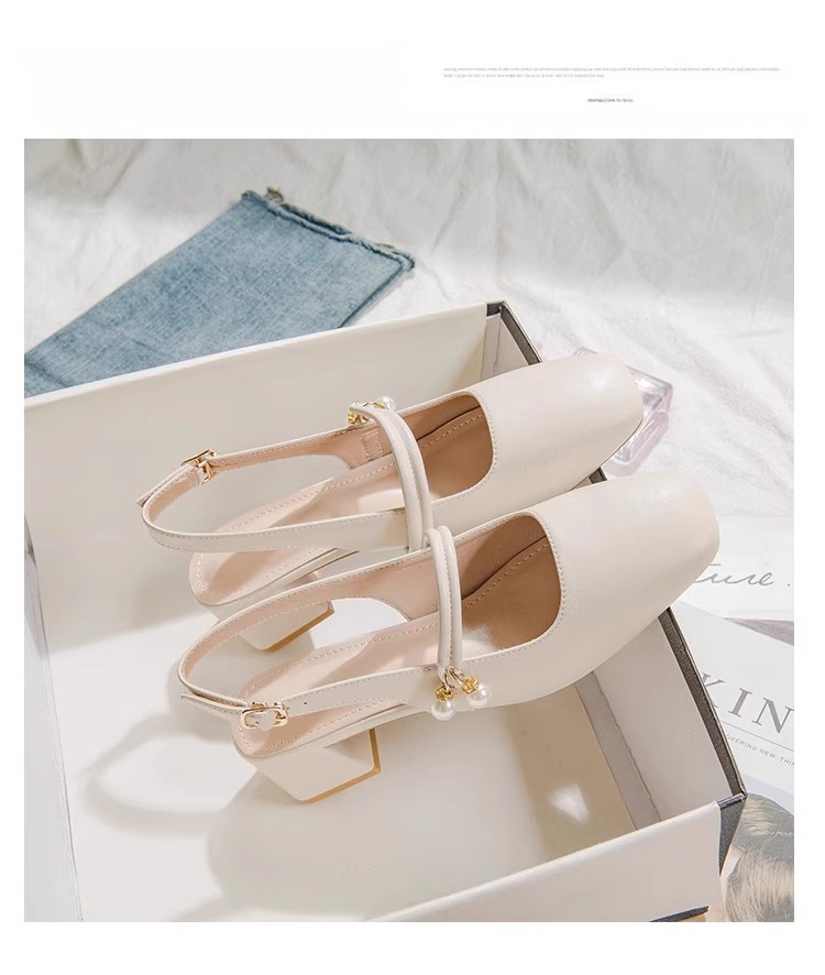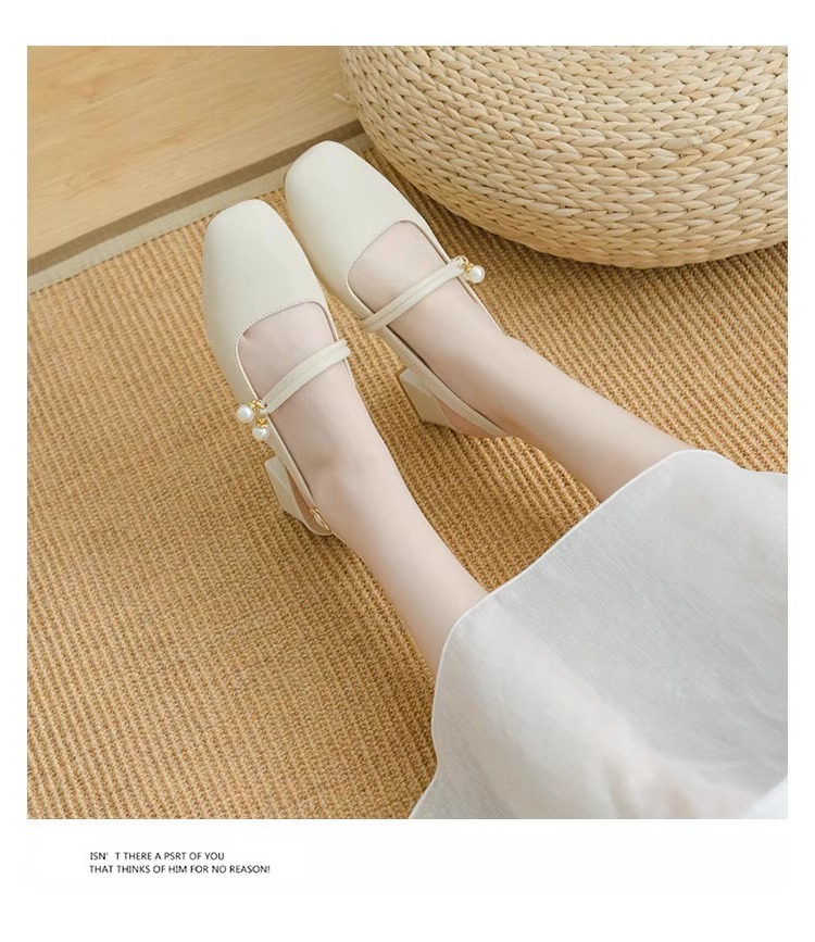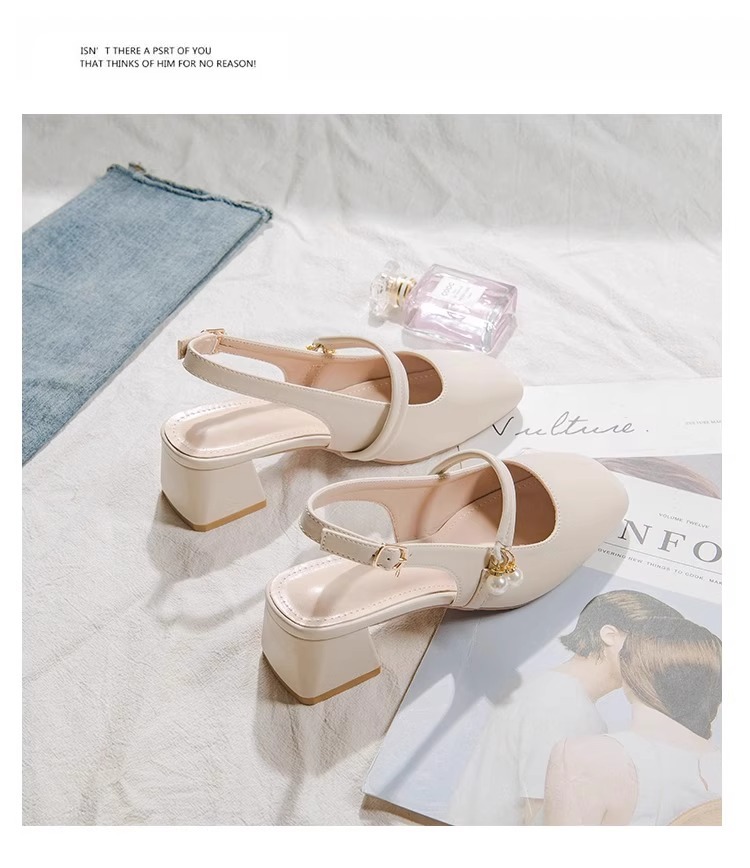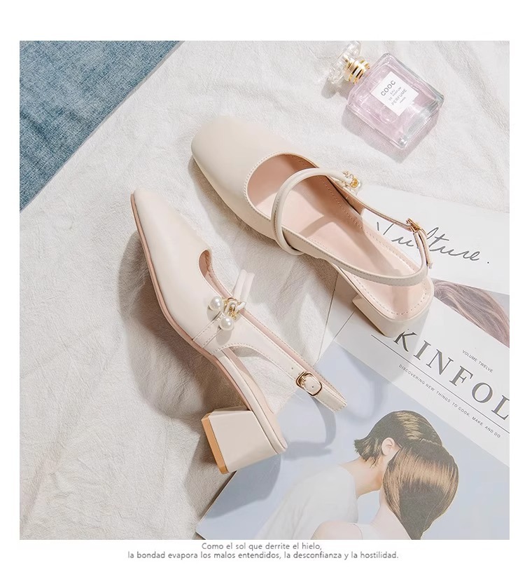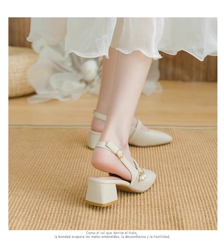 여성용 발가락 샌들 2025 여름 새로운 요정 스타일 두꺼운 뒤꿈치 프렌치 펄 아우터 스커트 빈 신발 착용스토어 가기