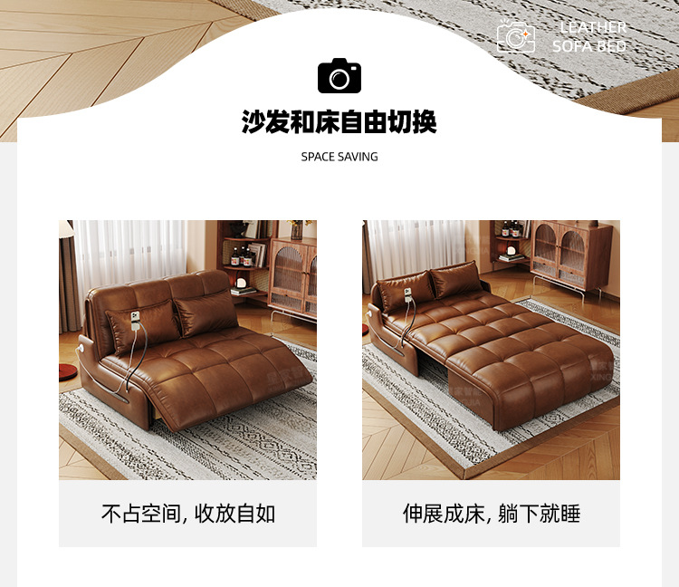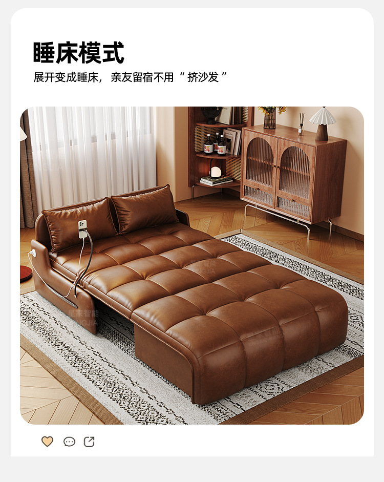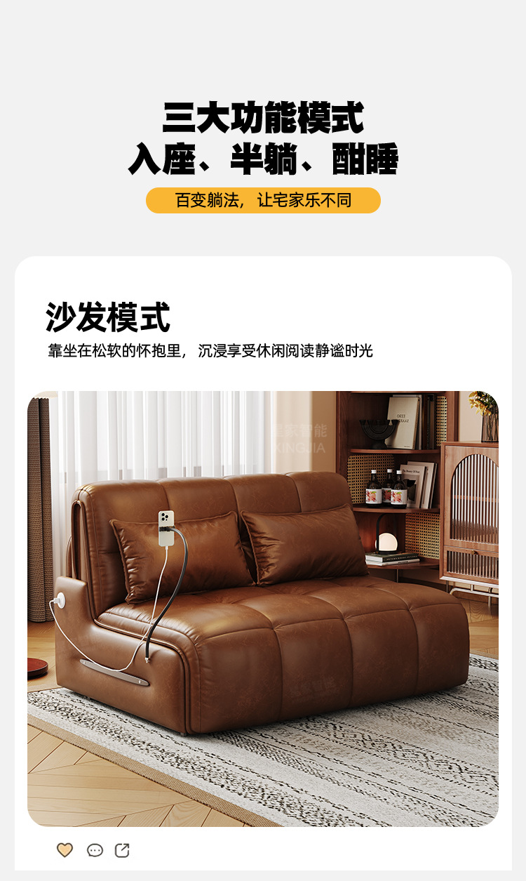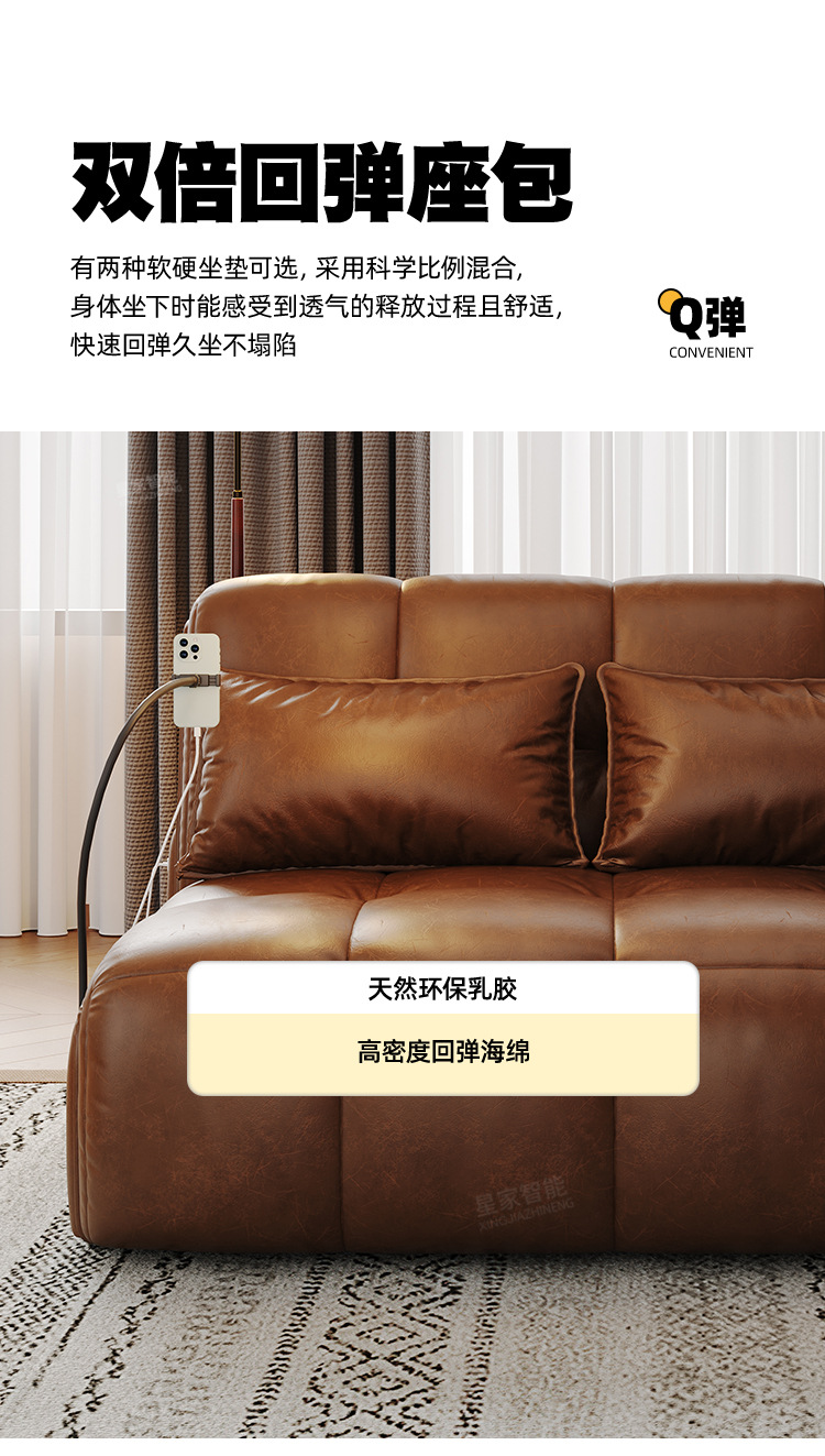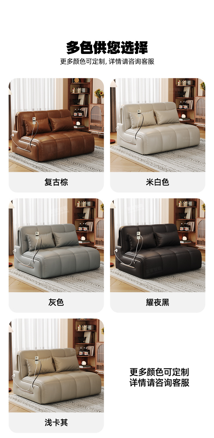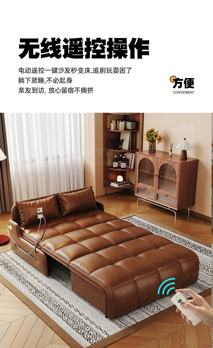 지능형 전기 소파 침대 접이식 이중 목적 2025 새로운 다기능 소형 아파트 거실 기름칠 왁스 스킨 빗 침대스토어 가기