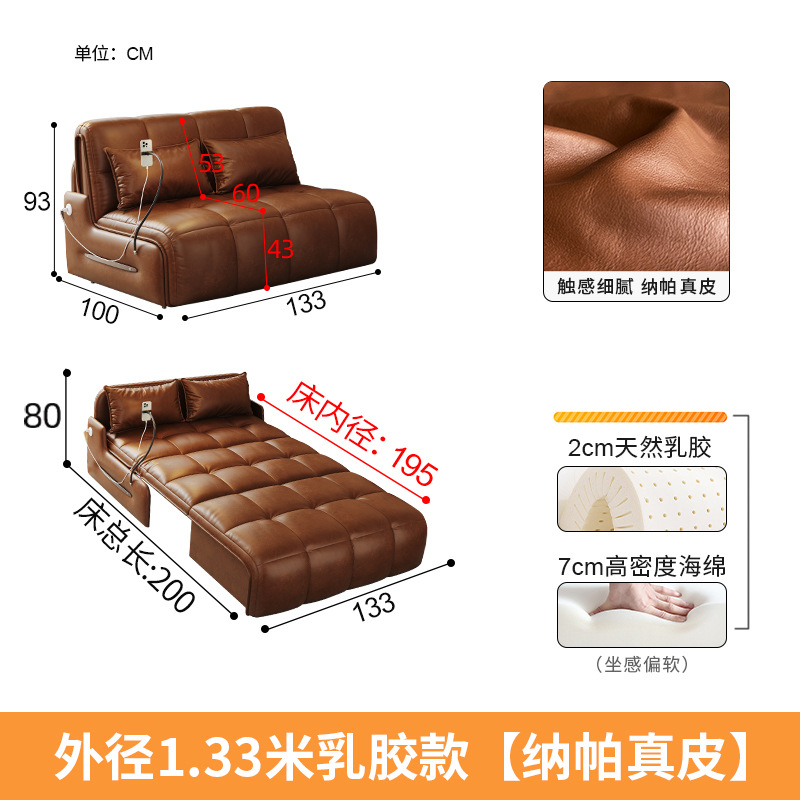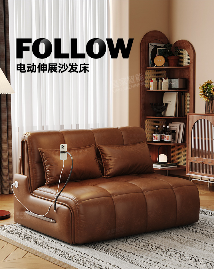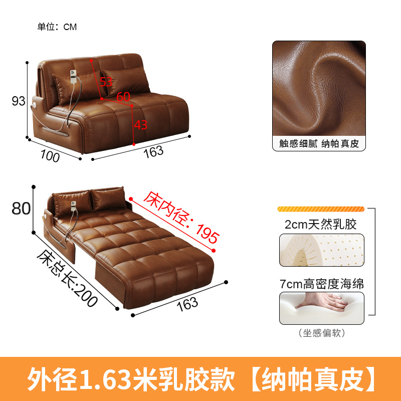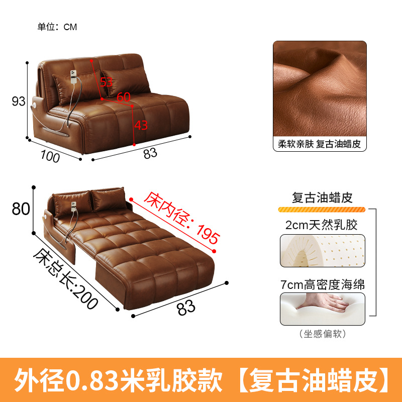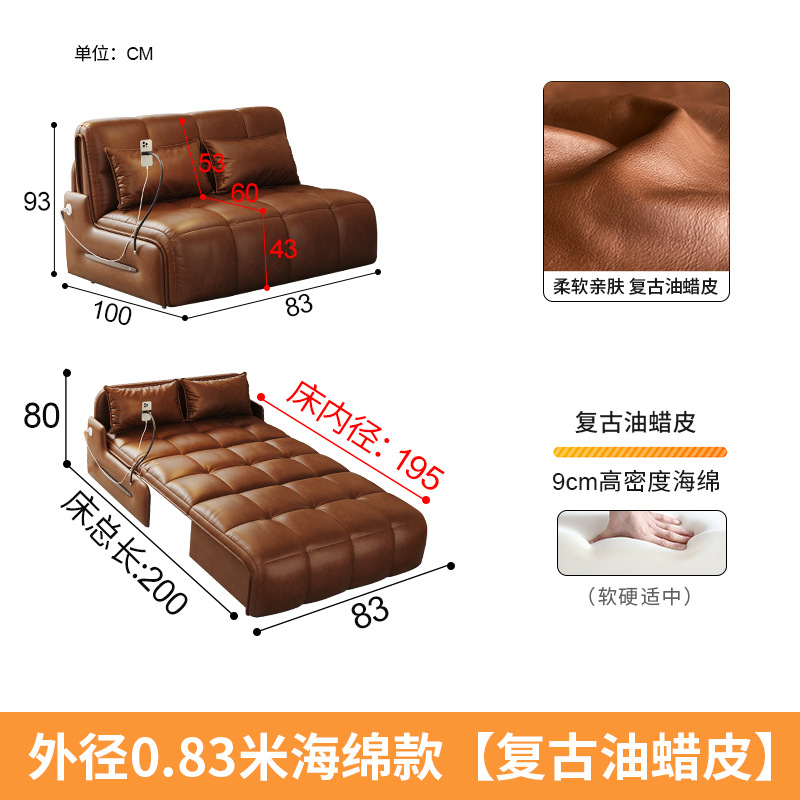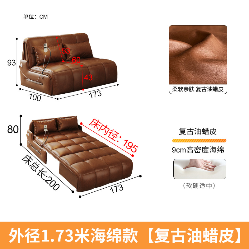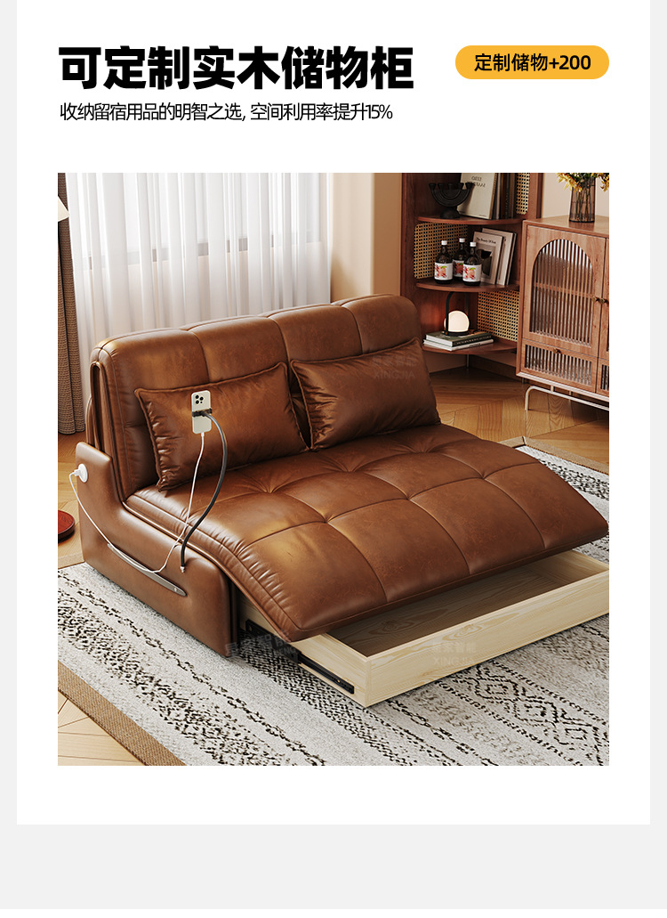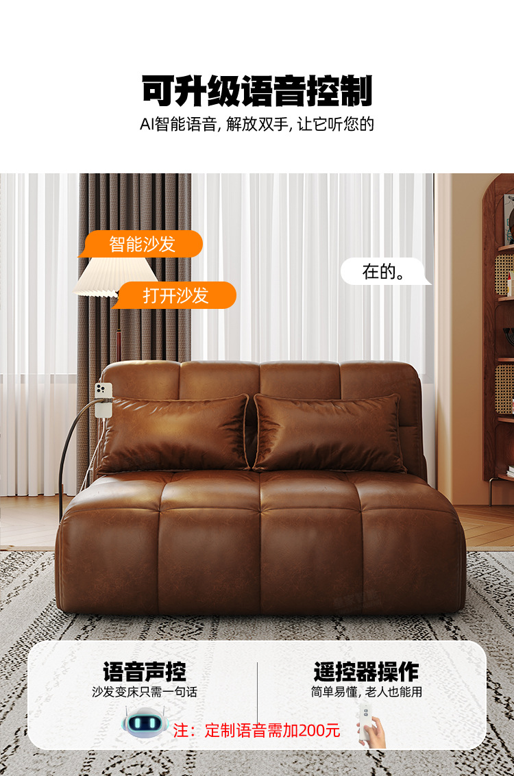 지능형 전기 소파 침대 접이식 이중 목적 2025 새로운 다기능 소형 아파트 거실 기름칠 왁스 스킨 빗 침대스토어 가기